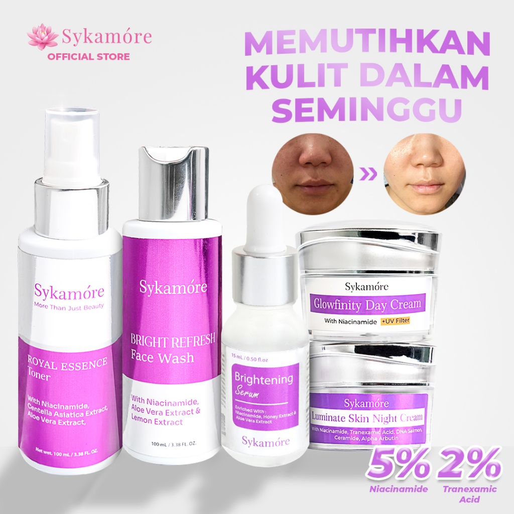 Sykamore Paket Lengkap Brightening Series Skincare Mencerahkan Wajah With Niacinamide 5 PERSEN DNA Salmon