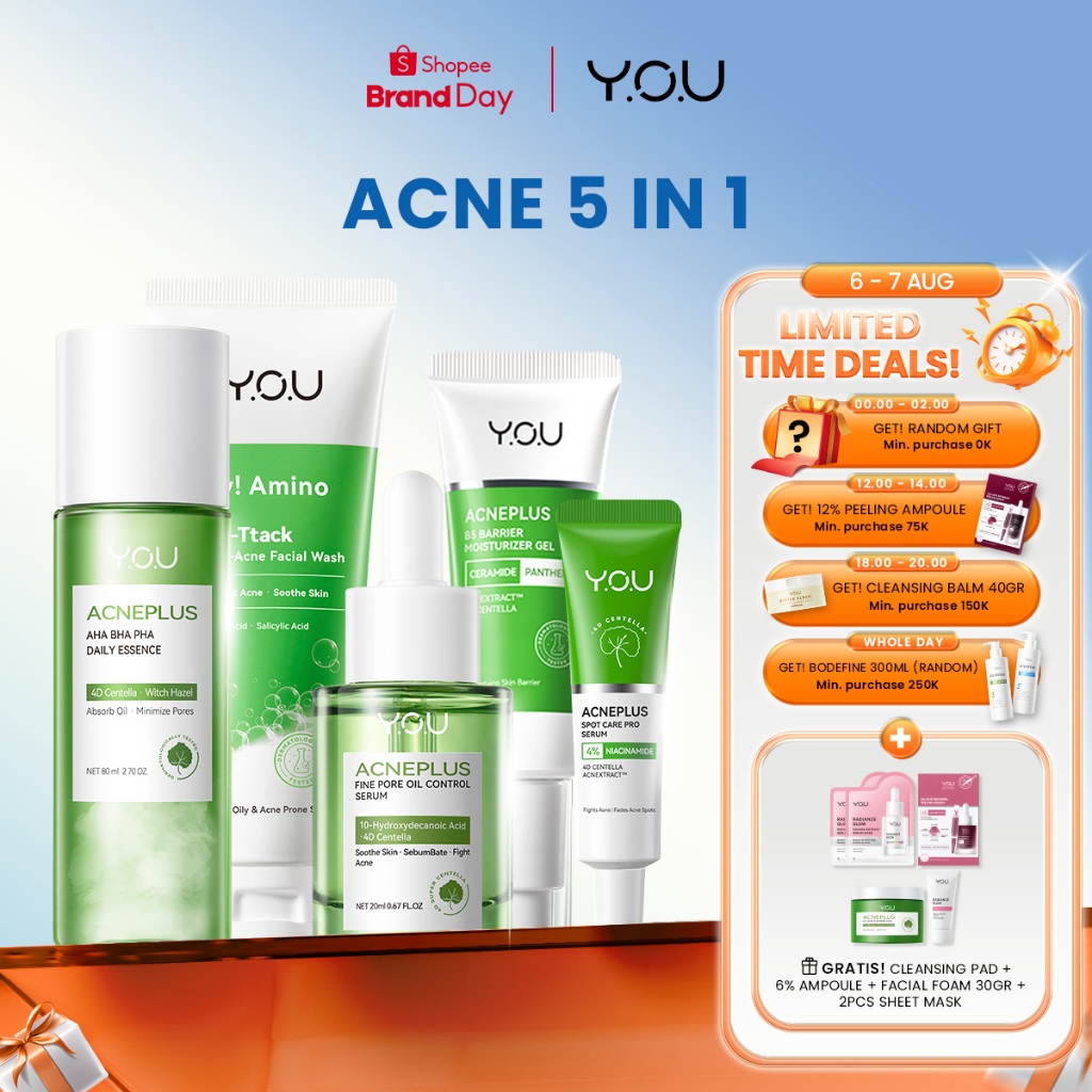 YOU AcnePlus 5in1 Bundle with Niacinamide Centella AHA Paket Acne Atasi Jerawat Paket Skincare