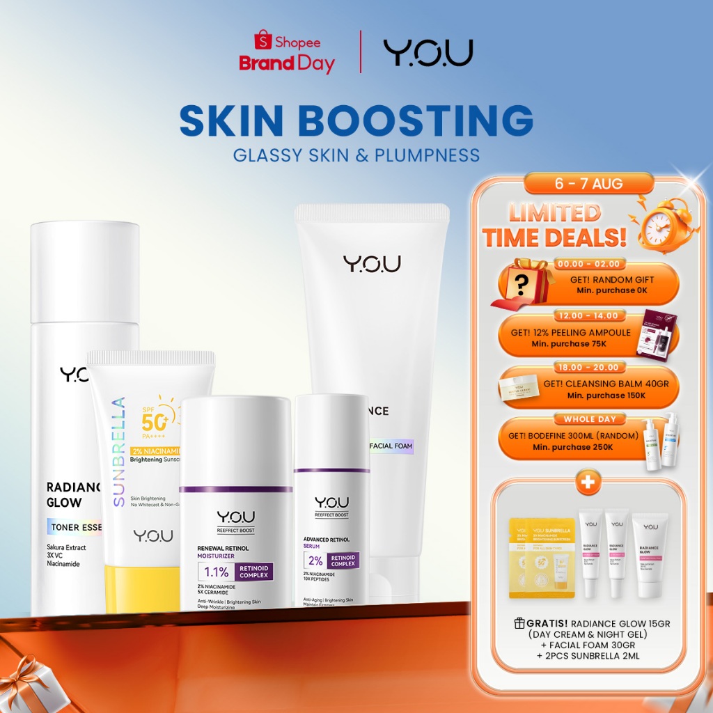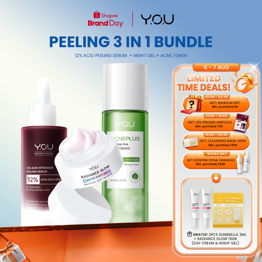 YOU 5in1 Paket Skincare Set 5pcs Radiance Glow, Radiance Up, Acneplus, Peeling Serum, Retinol, Sunbrella