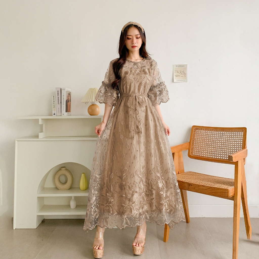 Dress Long Wanita Pesta Party dress kondangan panjang mewah dan elegan terbaru Brokat Formal Gaun Tile Simple Natal daniella