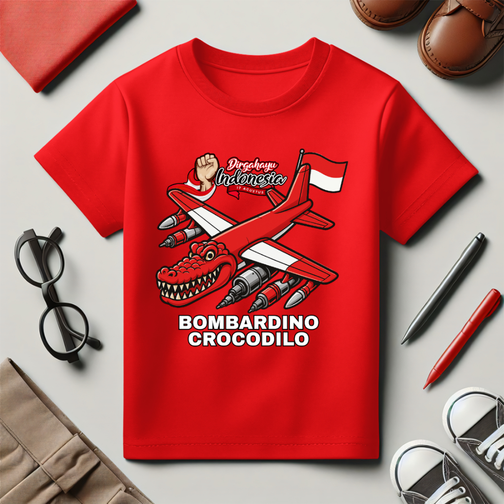 Baju Kaos Distro Anak Karakter Tung Tung Sahur Kemerdekaan Dirgahayu Indonesia Ke 80 1 - 10 Tahun