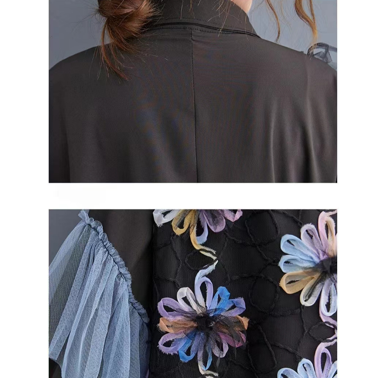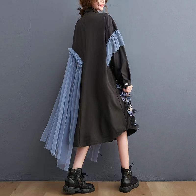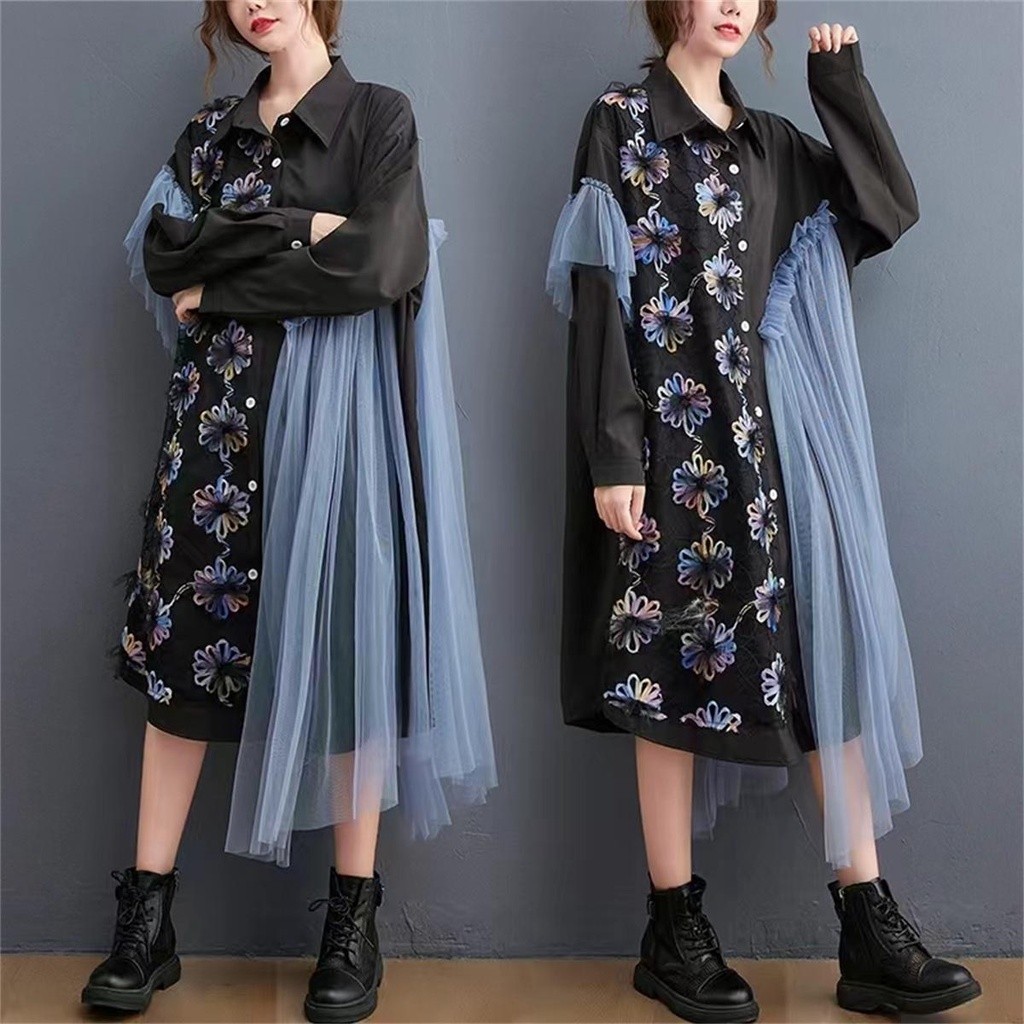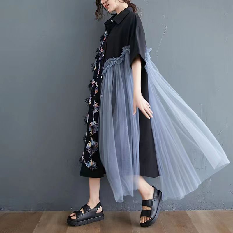 Busana gaya Eropa dan Amerika baru gaun kemeja dengan jahitan organza