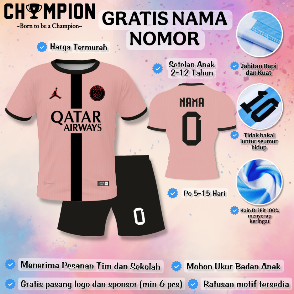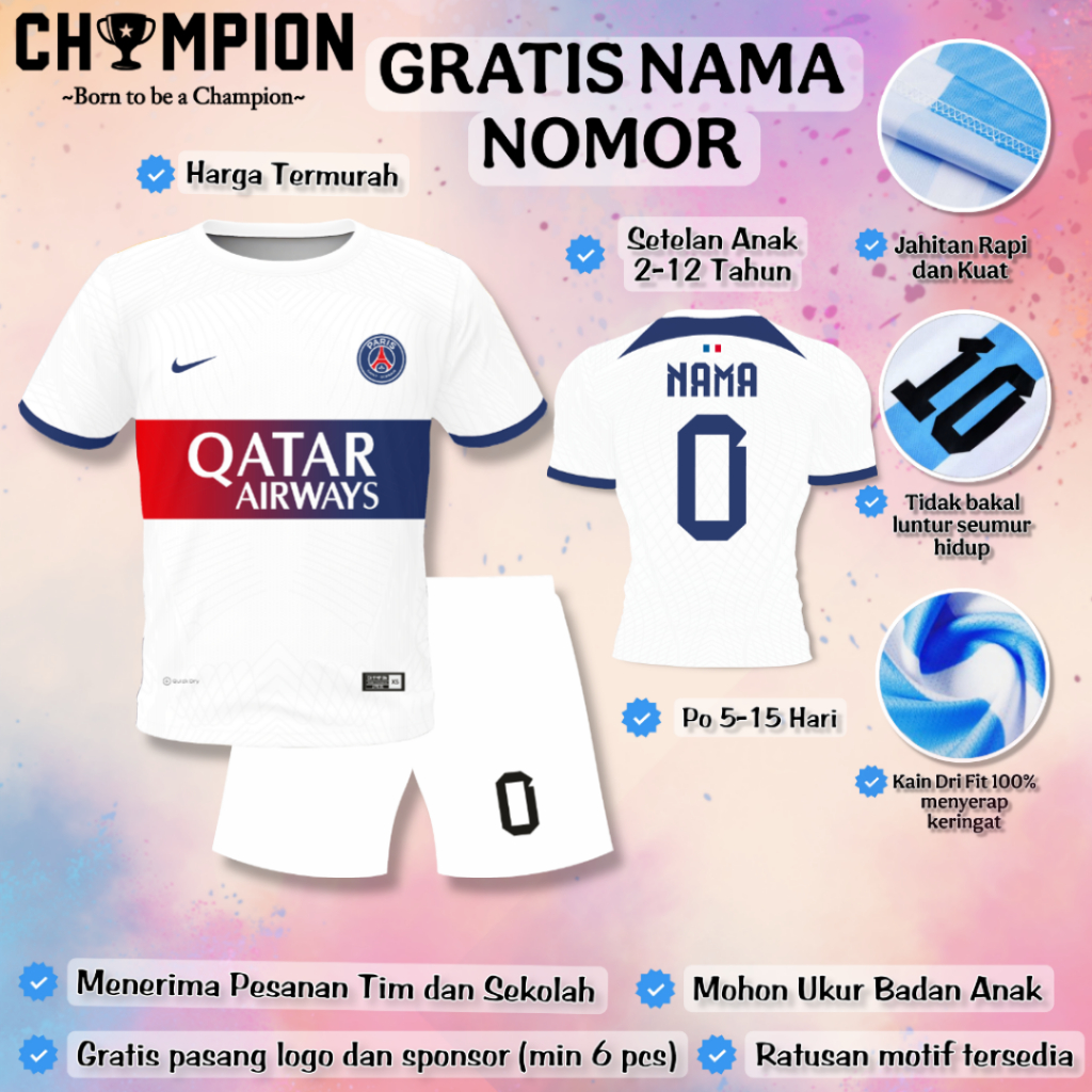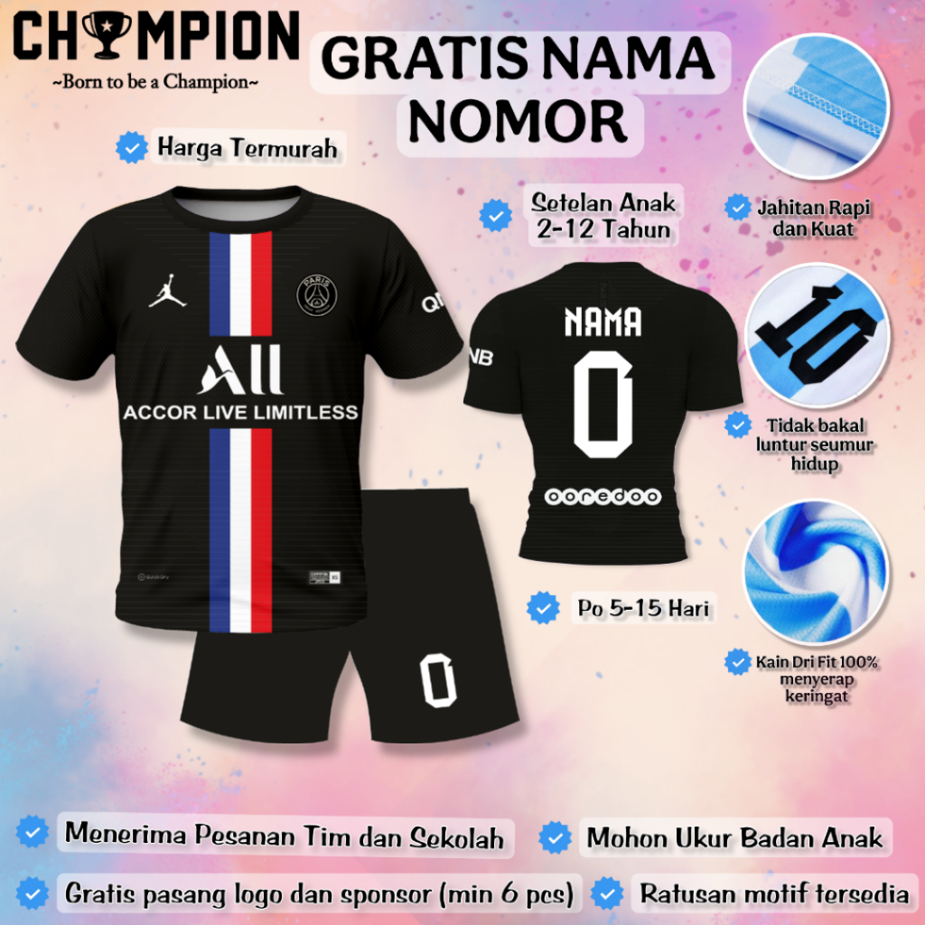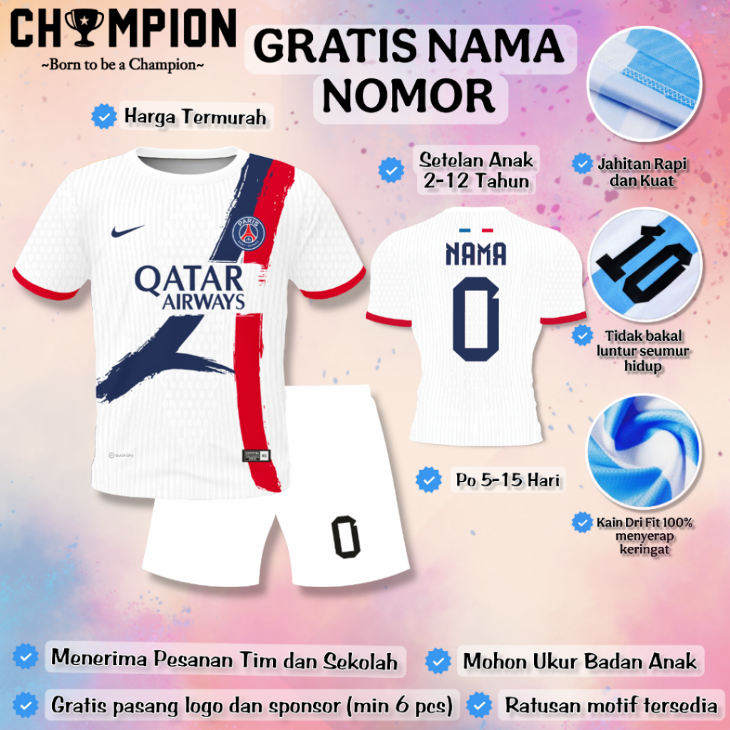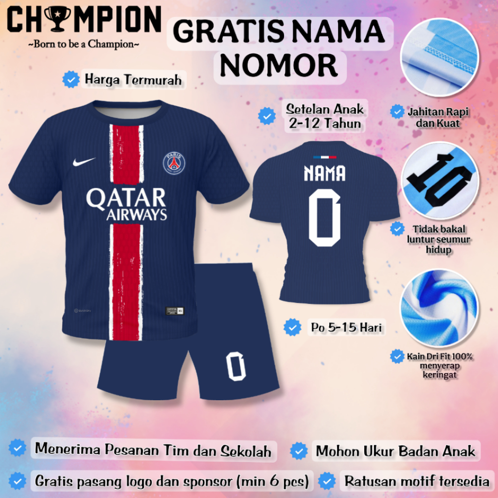 Setelan Baju Psg 2026 Anak / Setelan Bola Anak / Setelan Futsal Anak (Gratis Nama Nomor)