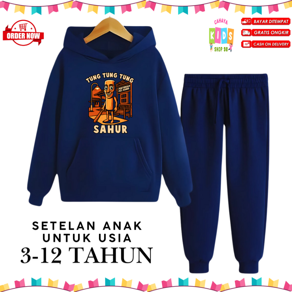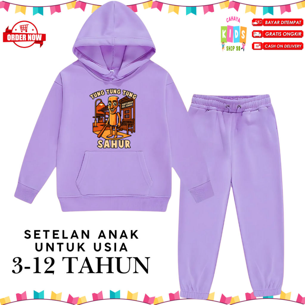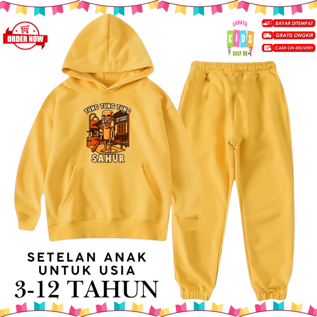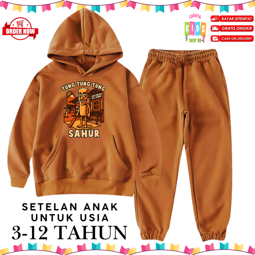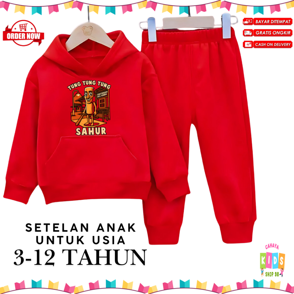 Setelan Hoodie Anak Motif Tung Tung Sahur Untuk Usia 3-12 Tahun
