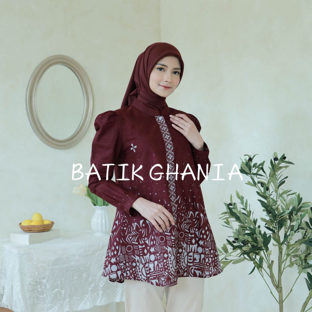 Batik Wanita Modern Atasan Batik Kerja Baju Batik Lengan Panjang motif sutEna