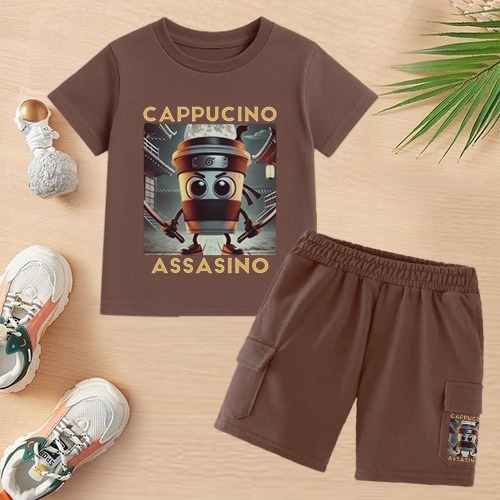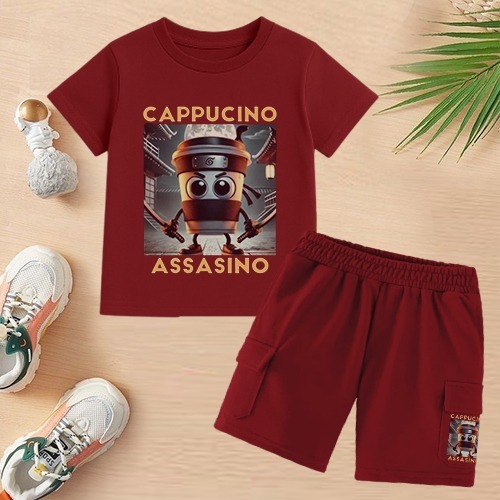 Cappucino Assasino Setelan Anak Laki Laki Anomali Baju Anak Laki Laki Tung Tung Sahur Kaos Pendek