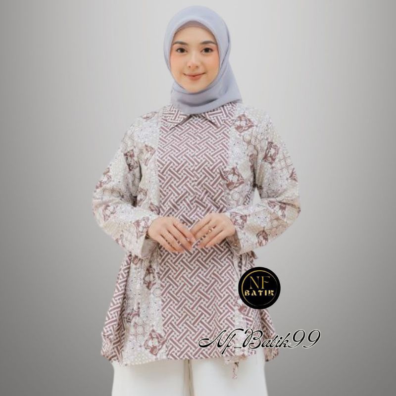 tey-17 Batik Wanita ASJ SA HRBO26 Kenongo Kemeja Tosca Pendek