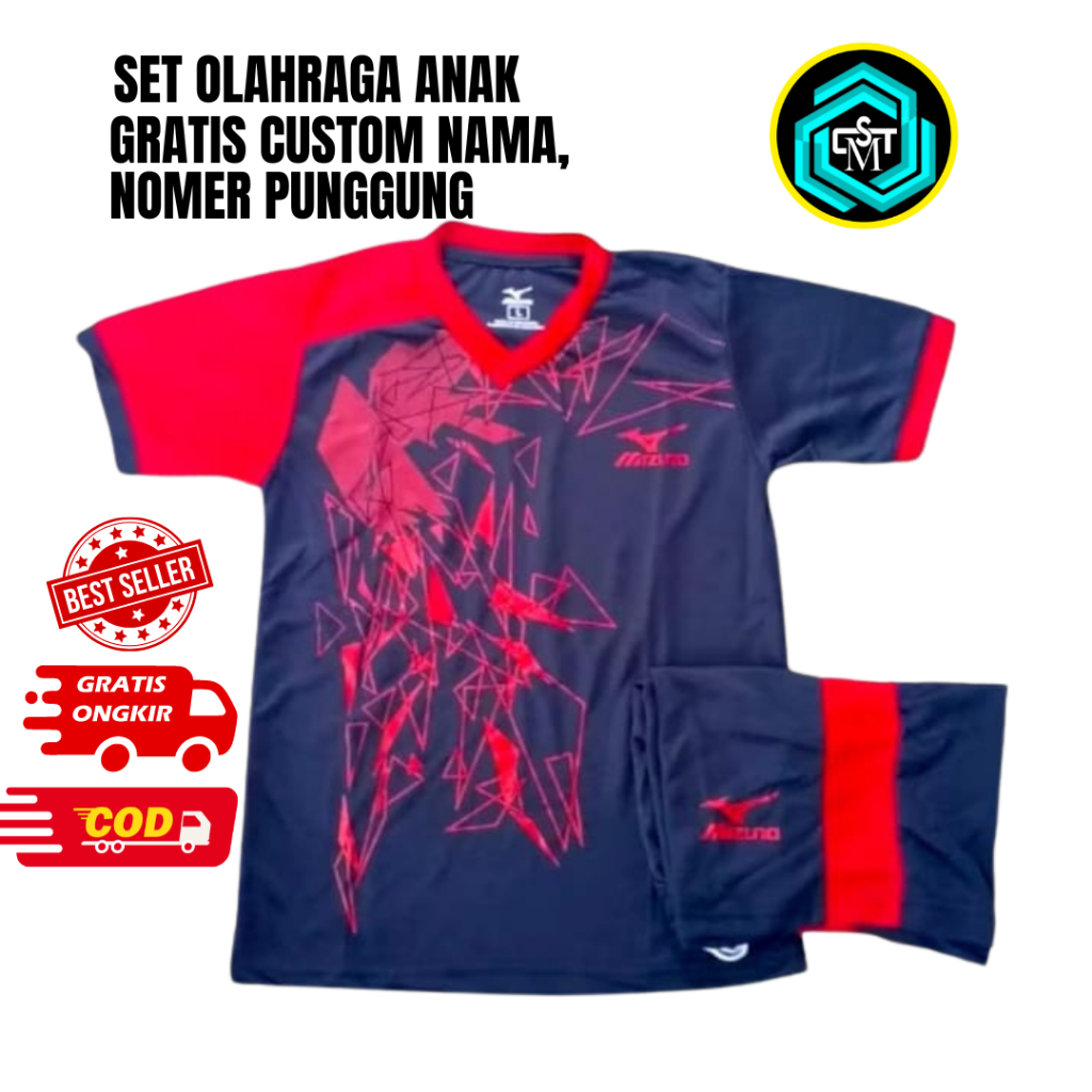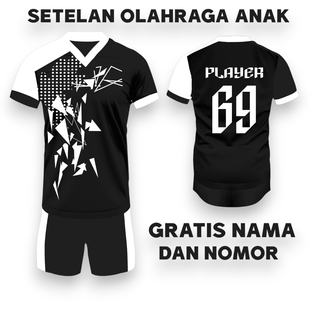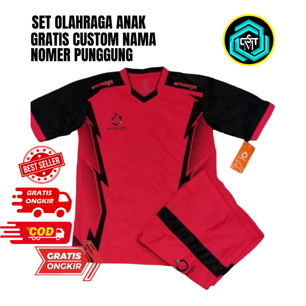 Gratis Nama Dan Nomor Set Baju Olahraga Anak Usia 5-14 Tahun Sd-Smp-Ssb Voly Badminton Putsal Unisex