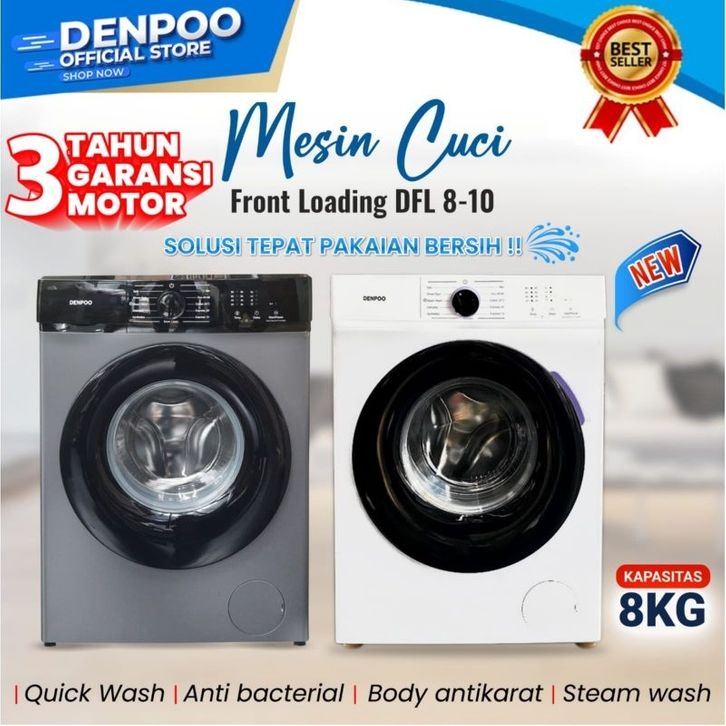 PROMO MESIN CUCI BUKAAN DEPAN ATAU FRONT LOADING DENPOO DFL-8-10 KAPASITAS 8KG ORIGINAL