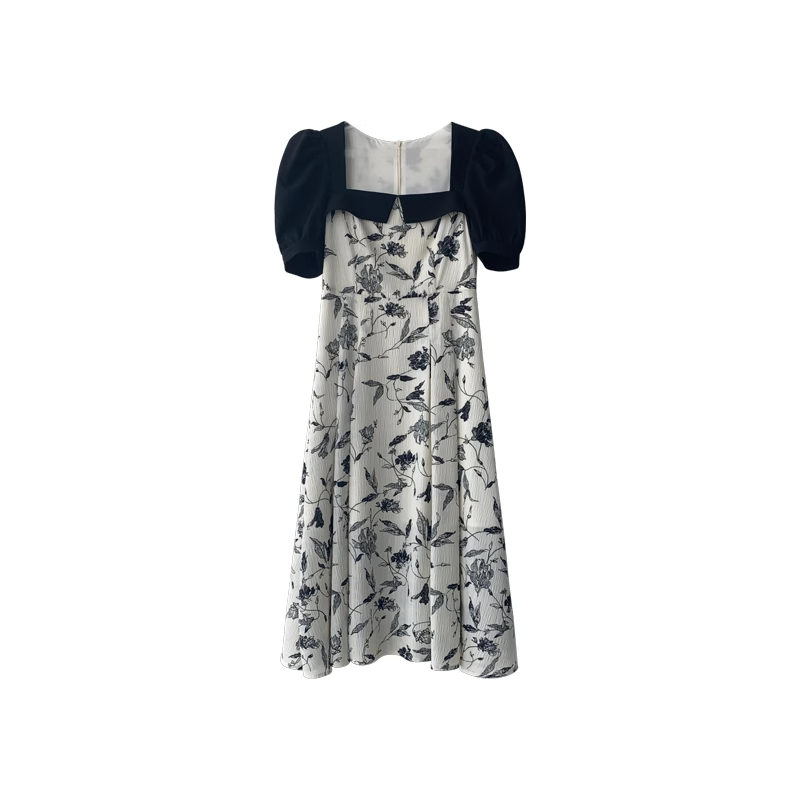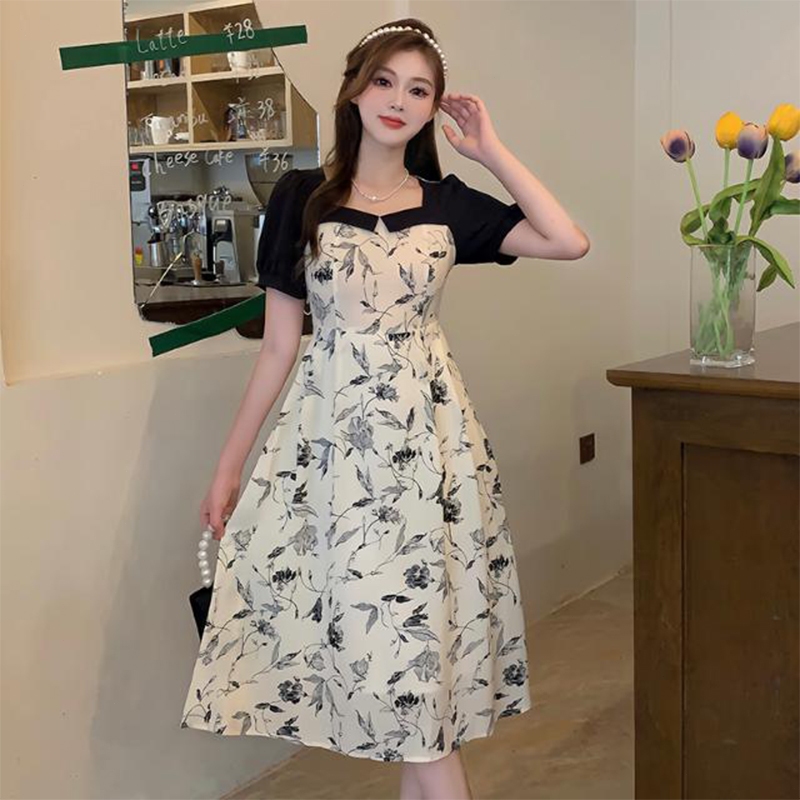 Yi Ya You - Best seller Dress floral kerah square kotak Dress Maxi panjang Dress pesta kekiniaan - gaun pesta mewah elegan dress bunga dress square neck K041