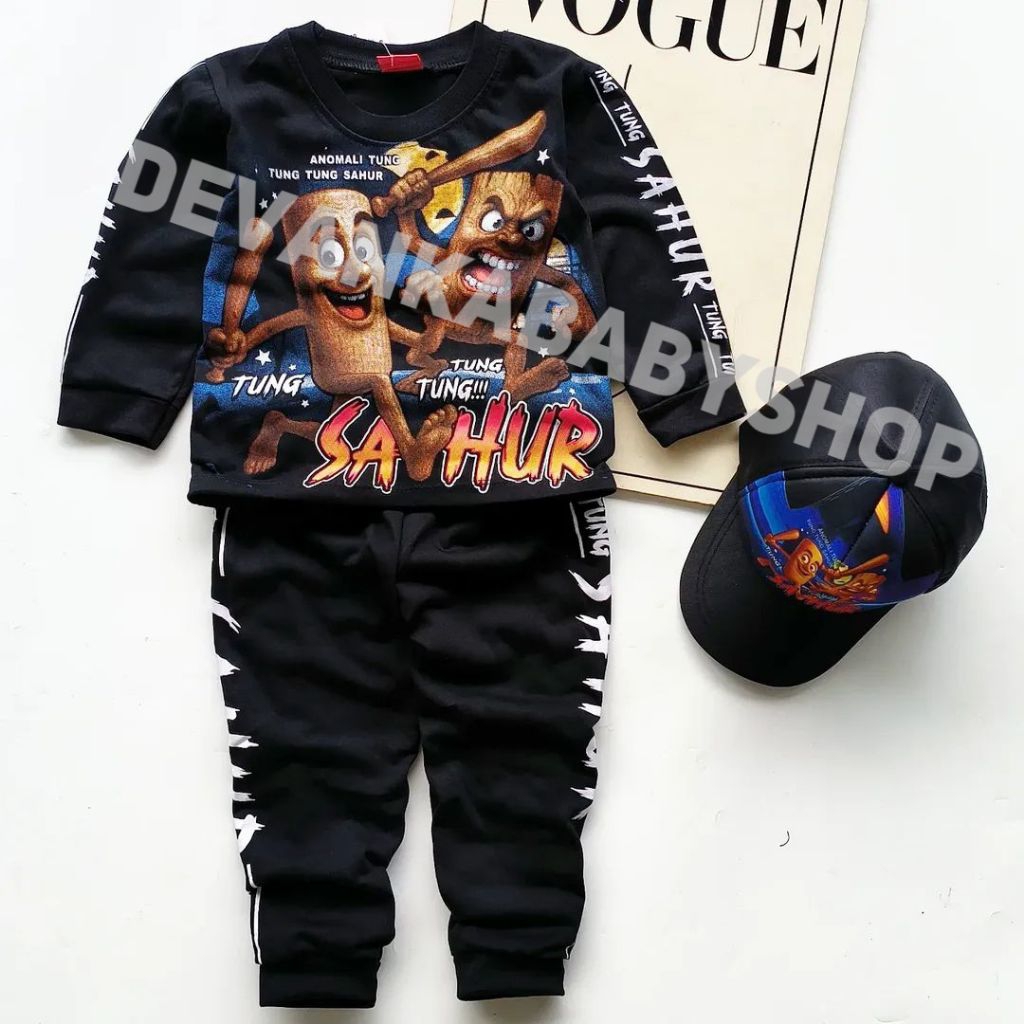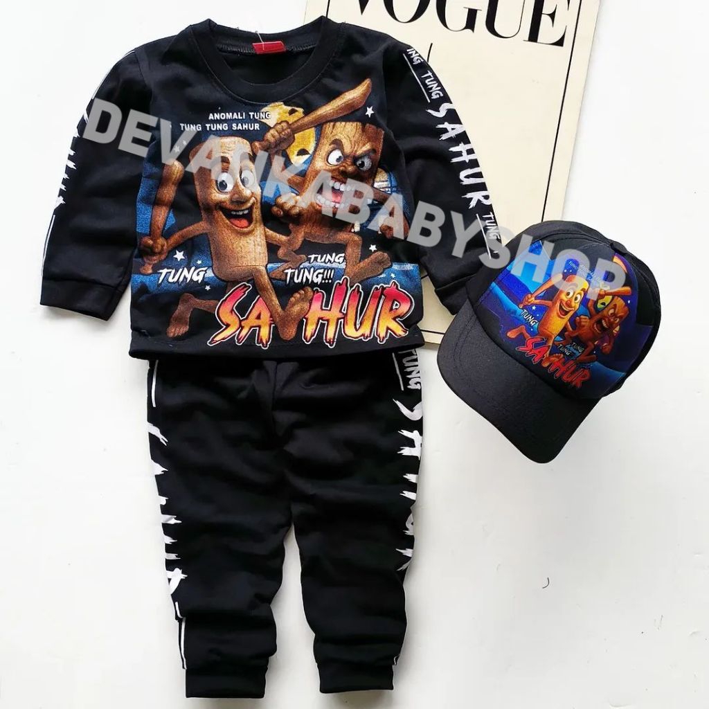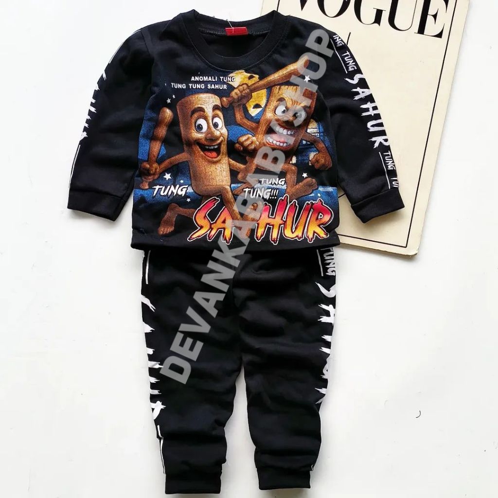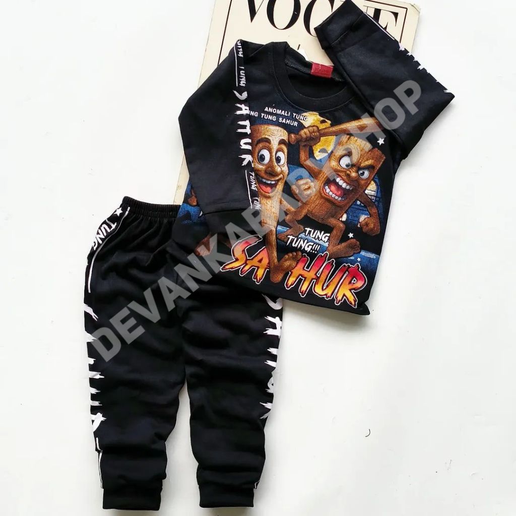 Baju Kaos Anak Lengan Panjang Motif Tung Tung Sahur Setelan Anak Laki Laki Piyama Motif Viral Lucu Bahan Bagus Murah Bis