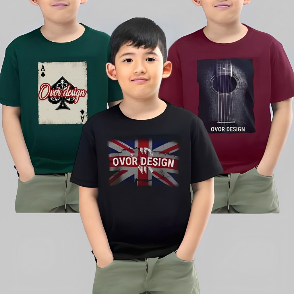 Kaos Anak Laki-Laki Distro Kaos Anak Tanggung Lengan Pendek Bahan Katun Usia 10-15 Tahun (Isi 3-Pcs)