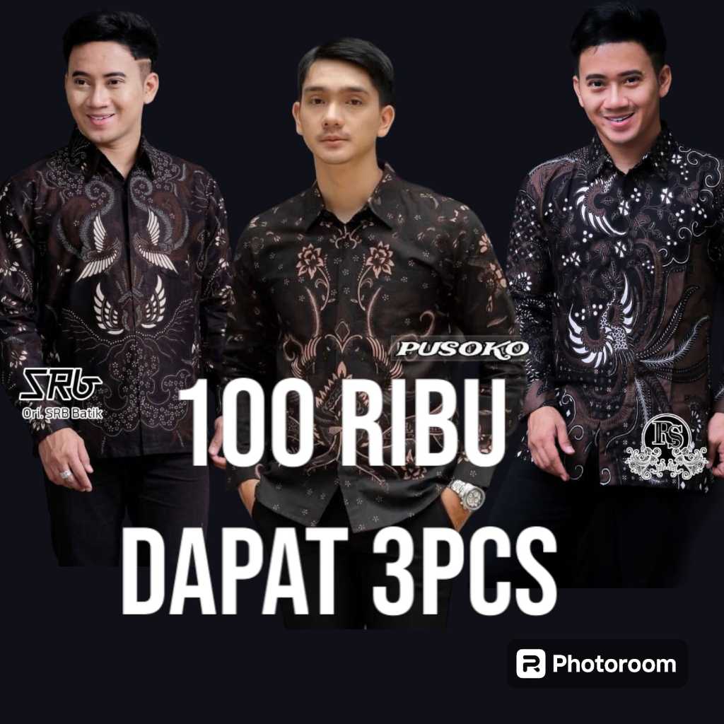 (PROMO) 100rb dapet 3pcs - kemeja batik pria termurah - kemeja batik pria lengan panjang - kemeja batik pria terlaris motif terbaru - bahan politekstil