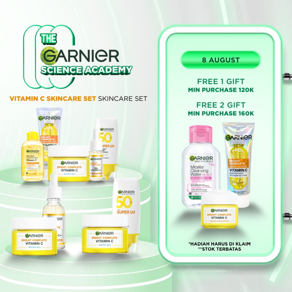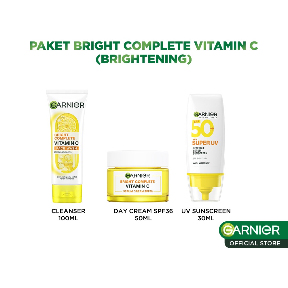 GARNIER Paket Brightening Skincare Set 2pc 3pc 5pc | Micellar Water Serum Wash Cleanser Moisturizer Gel Super UV Sunscreen SPF