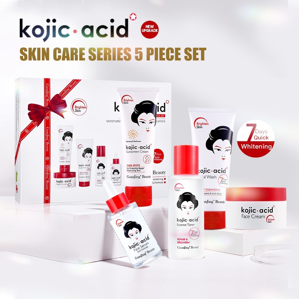 【GIFTBOX】Kojic Acid Set 5in1 Guanjing Gift Paket Skincare Pelembab-PembersihWajah-EsensiSerum-Toner-Sunscreen - Paket Lengkap Kojic Acid san