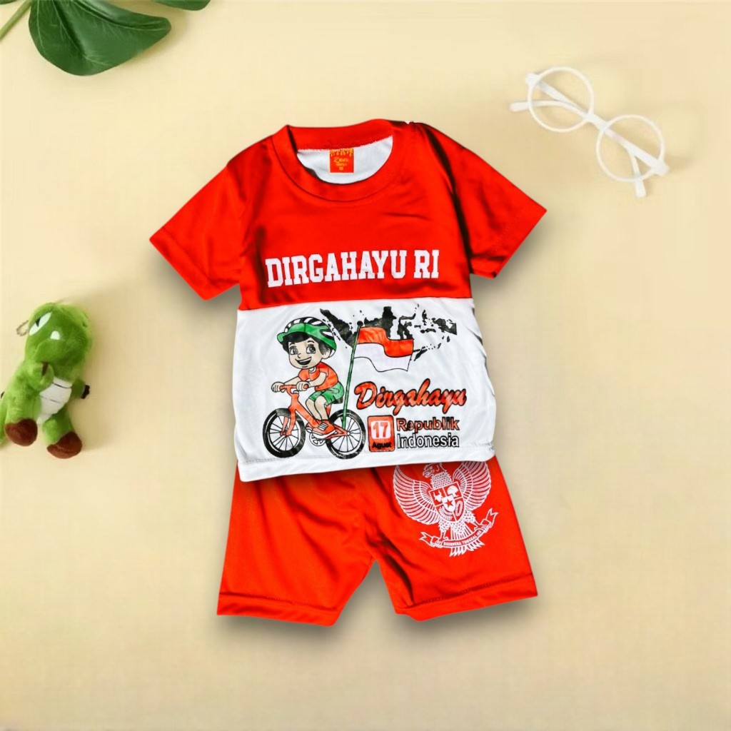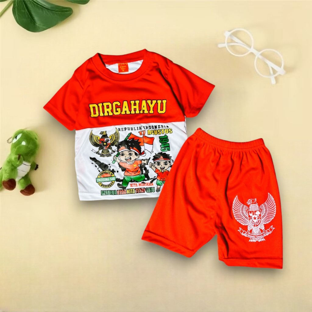 Setelan Baju Merah Putih Anak Motif Terbaru Bahan Jersy Ready Usia Anak 6 Bulan-5 Tahun