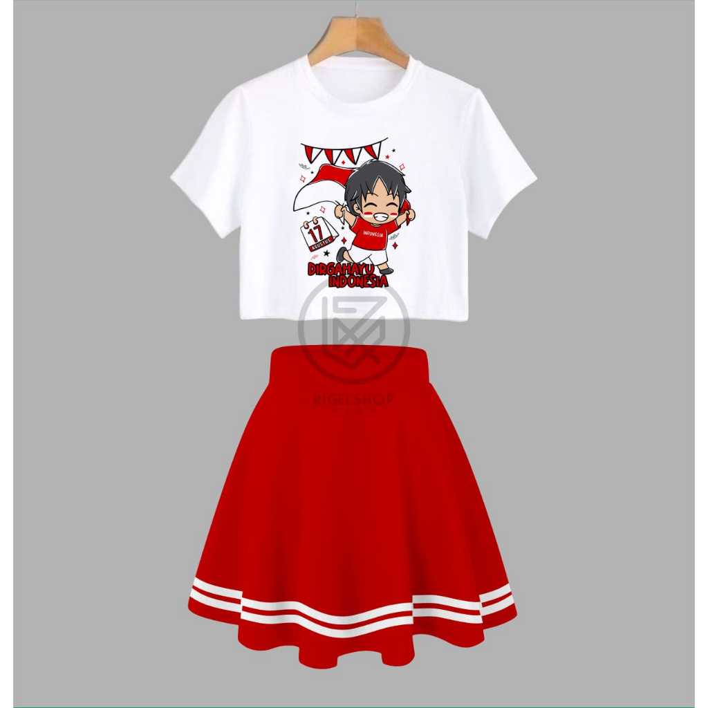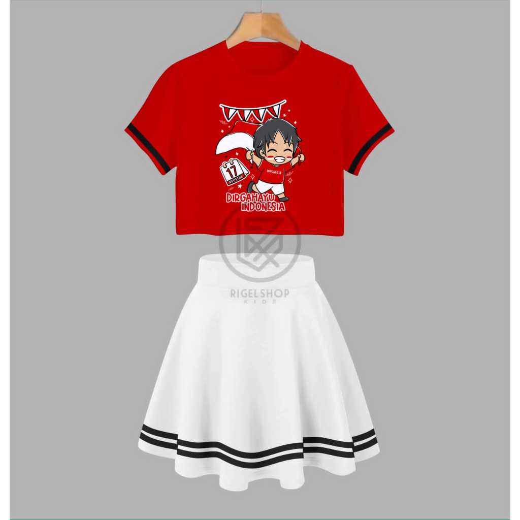 One Set Crop Top Baju Anak Dan Rok List Anak Perempuan Limited Edition Special Kemerdekaan Untuk Umur 1 Sampe 10 Tahun S