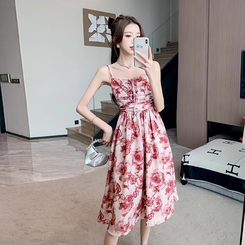 Miss Emita blue midi dress baju pantai wanita floral dress biru gaun korean style party elegan XS-2XL
