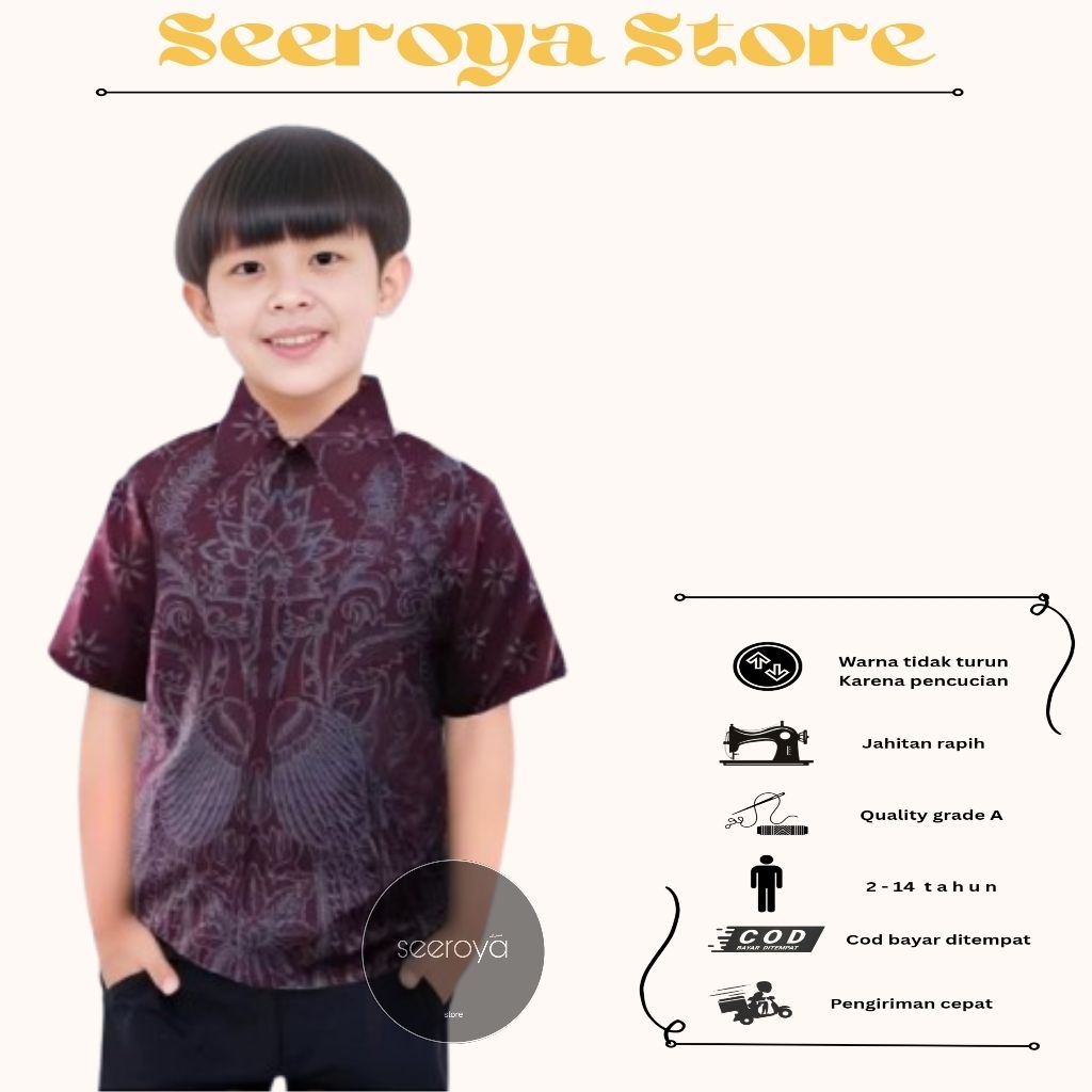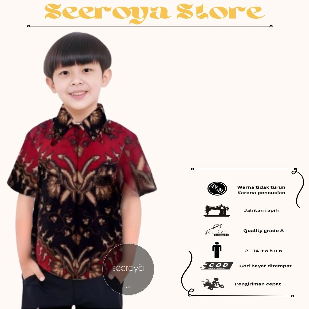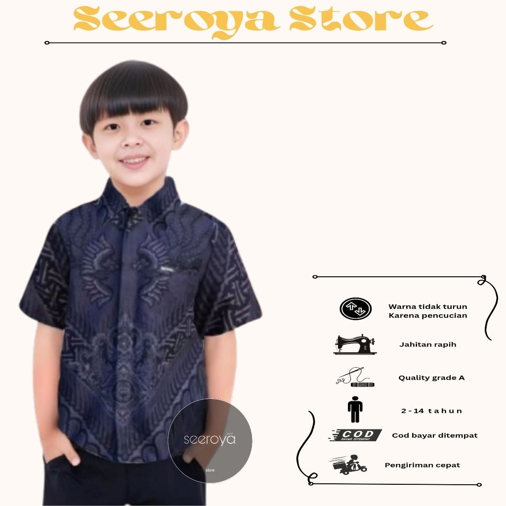 Hem Baju Batik Anak Laki Laki Lengan Pendek usia 2-14 tahun Size M L XL XXL-Hem Batik Anak Laki Laki-Hem Batik Anak Cowok Motif Terbaru