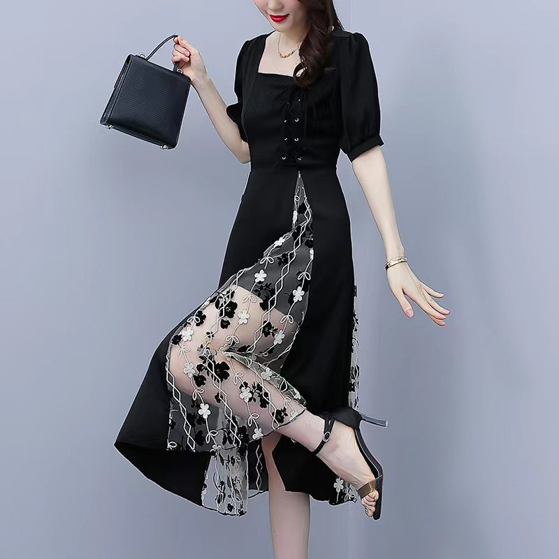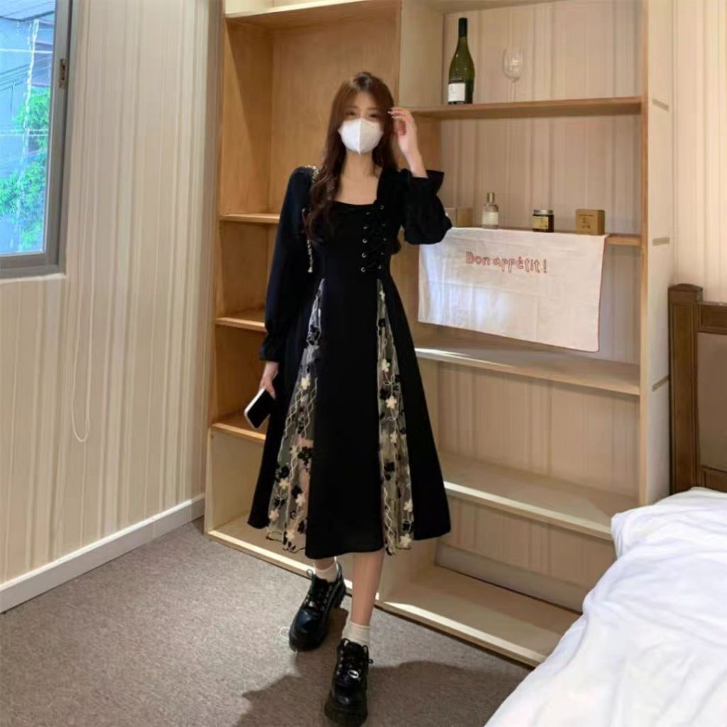 【Ready Stock 】FAN Gaun Hitam Mode Korea/Gaun Lengan Panjang Hitam/Gaun pesta
