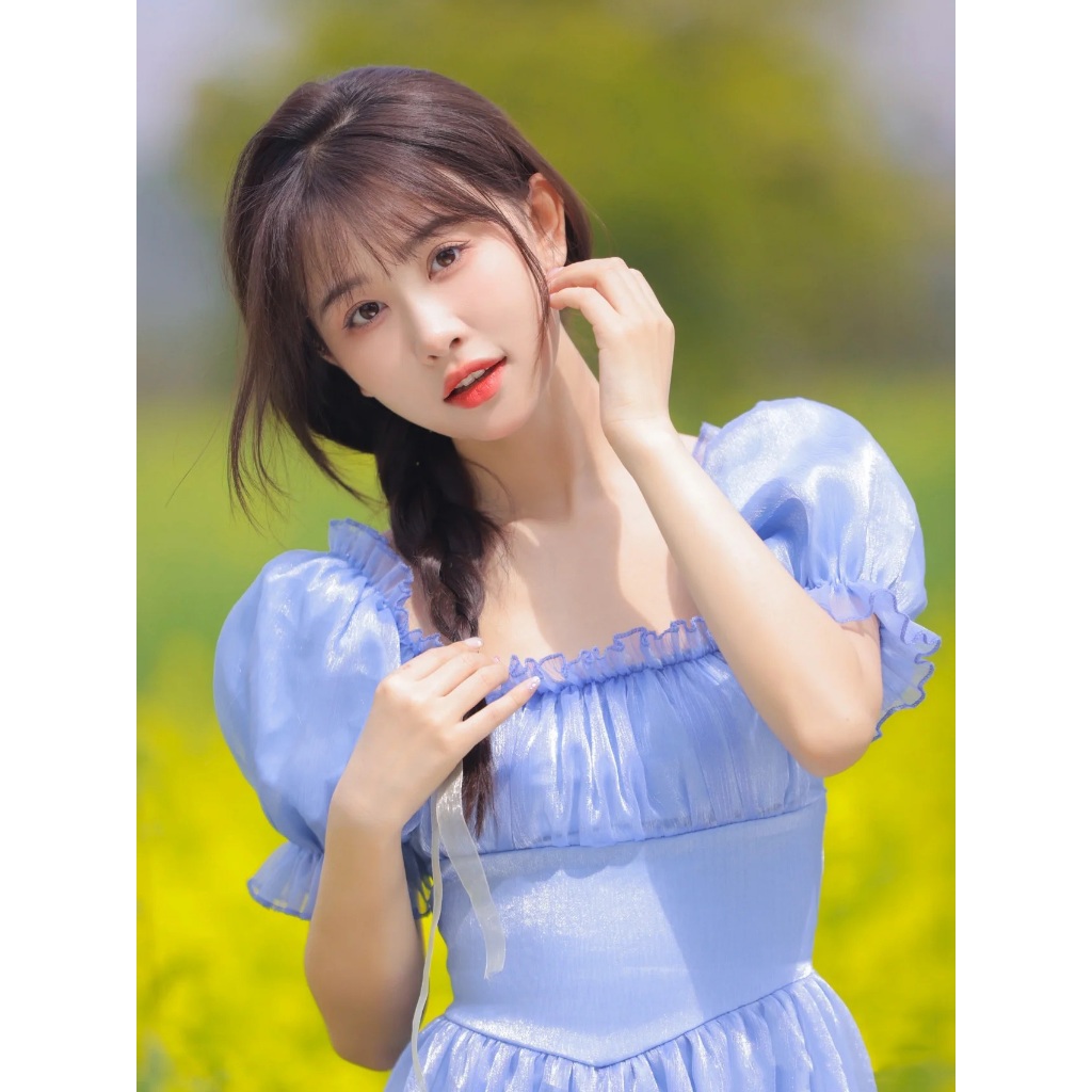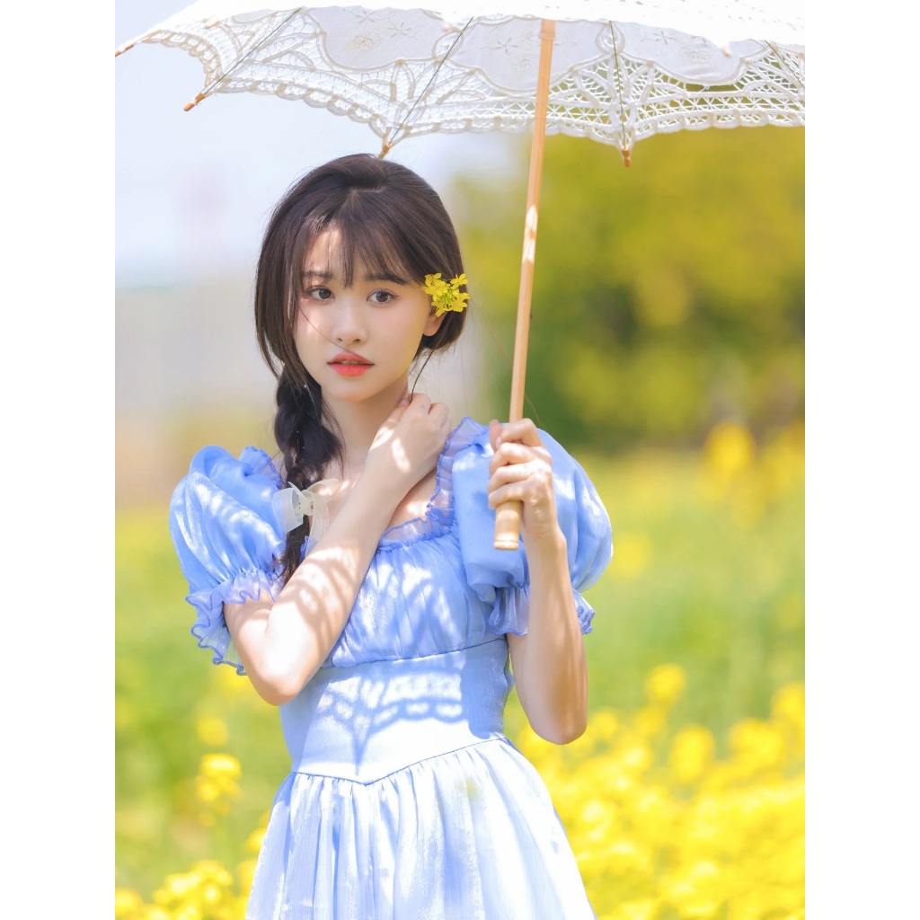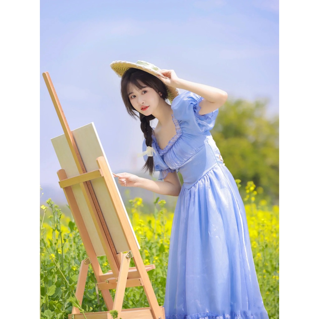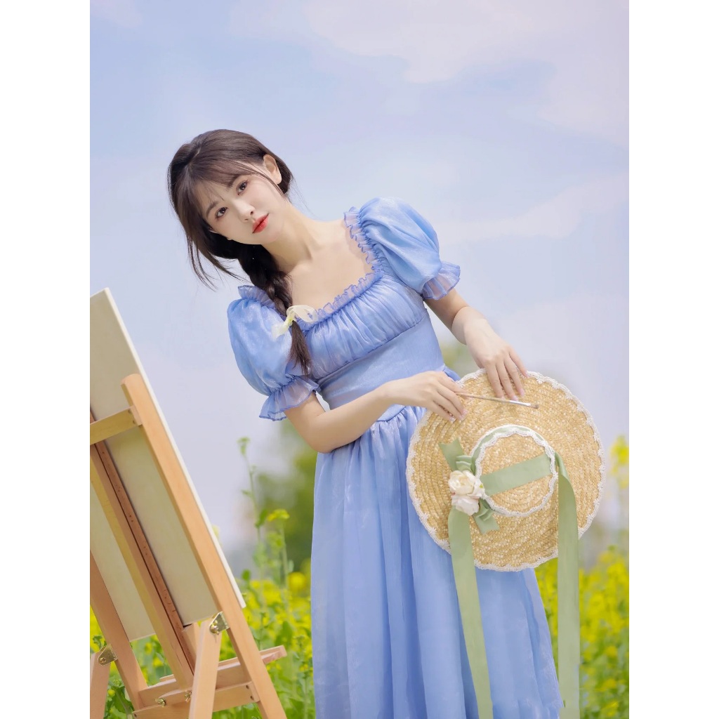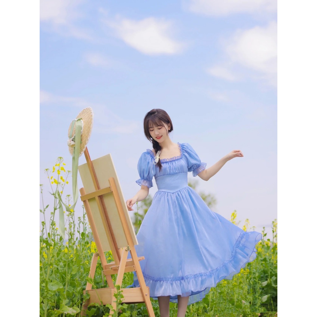 Gaun Putri Buronan Gaun Peri Perjamuan Keinginan Murni Punggung Terbuka Busur Biru Istana Retro Prancis