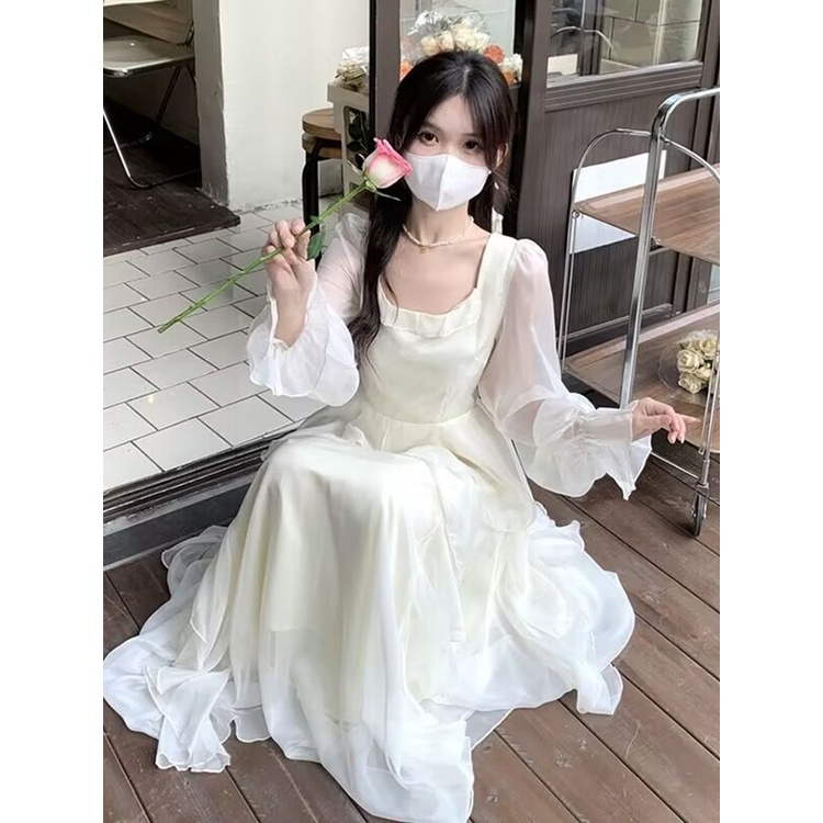 【SUKY SHOP】Gaun Putri Peri Putih Lengan Panjang Gaun Panjang