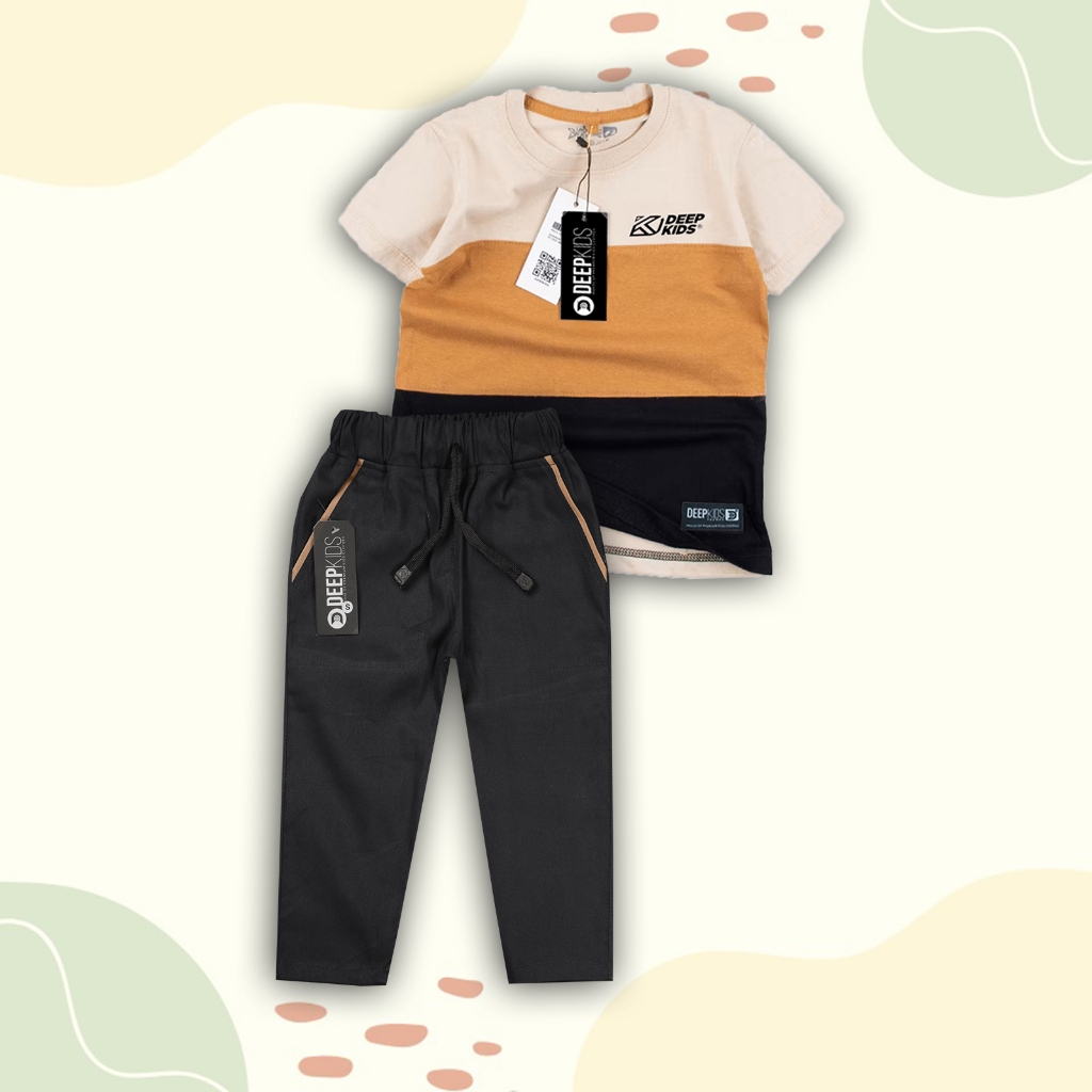 Setelan Anak Laki Laki Kaos & Celana Chinos Panjang Usia 1-12 Tahun Set Pastel Chinos Panjang