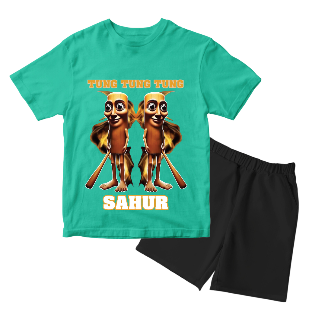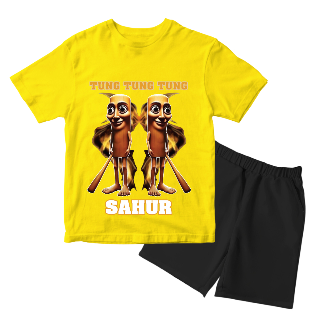 Baju Setelan Tung Tung Sahur Anak Laki Laki - Kaos Distro Karakter Anomali Keren Umur 1 - 10 Tahun