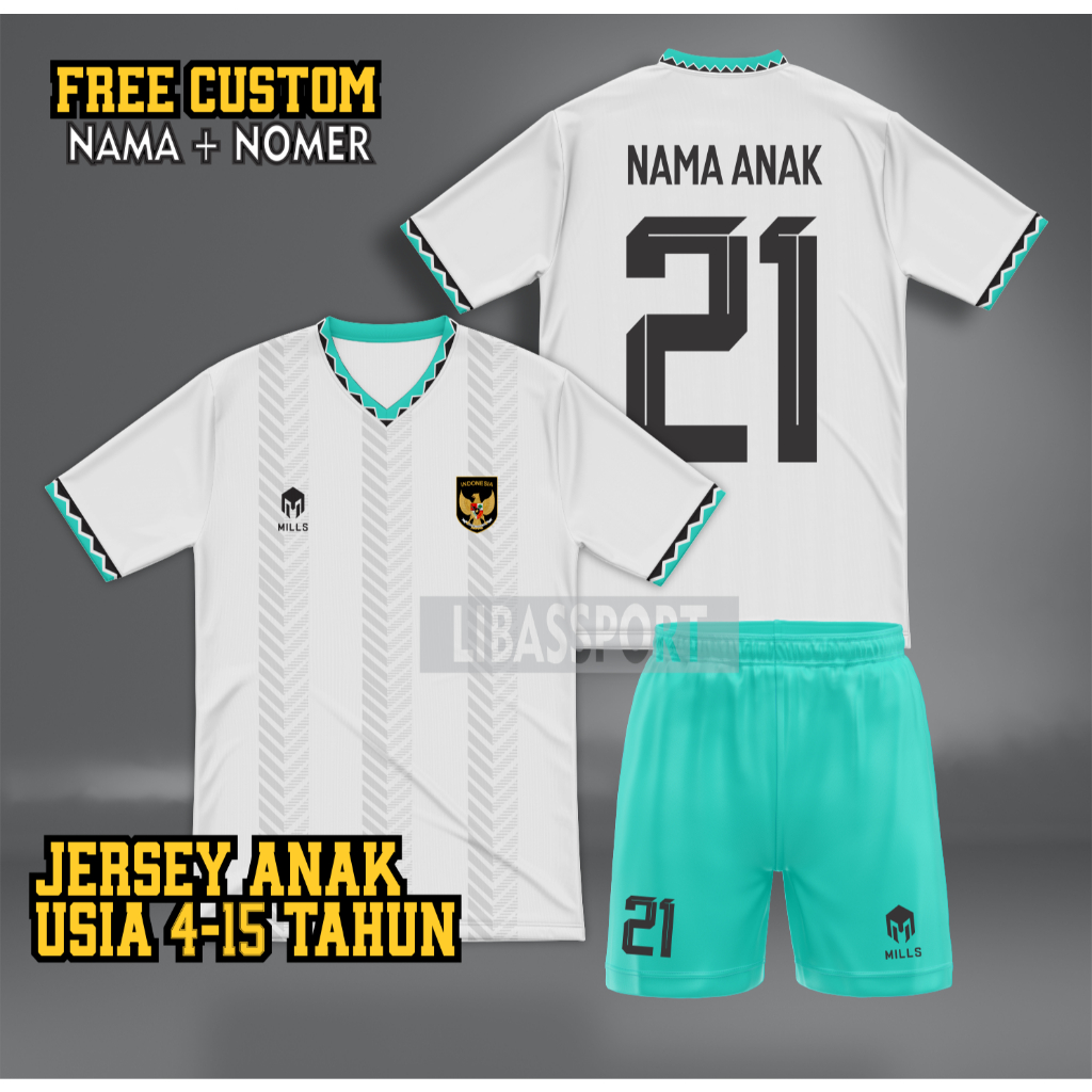 Gratis Nama & Nomer Punggung, Stelan Jersey Timnas Pria Dan Wanita Ukuran Anak - Anak.