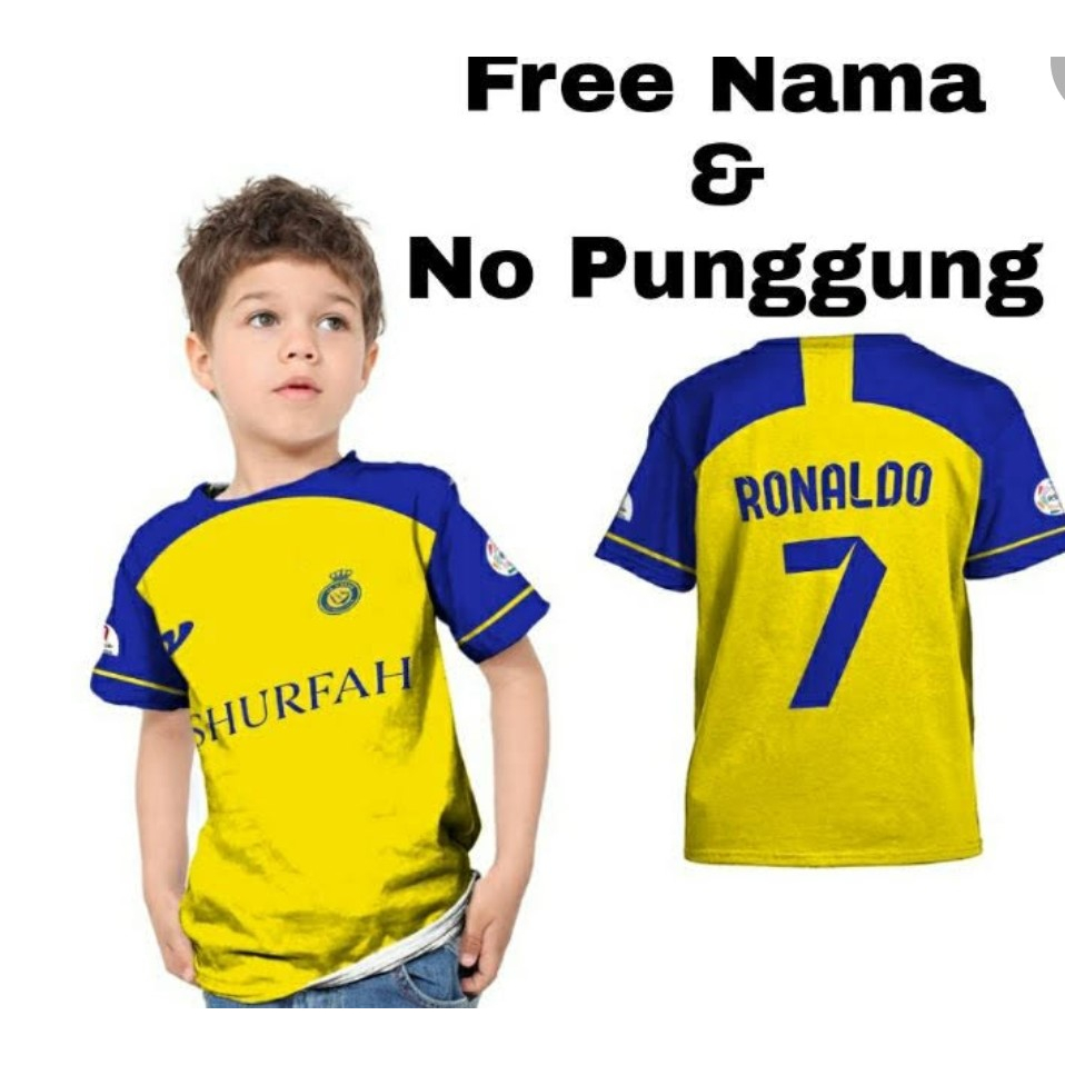 Best Seller Jersey Kits Anak Atasan+Celana 1-12 Thn Al Nassr Home Ronaldo Full Printing / Baju Bola Anak / Stlan Futsal