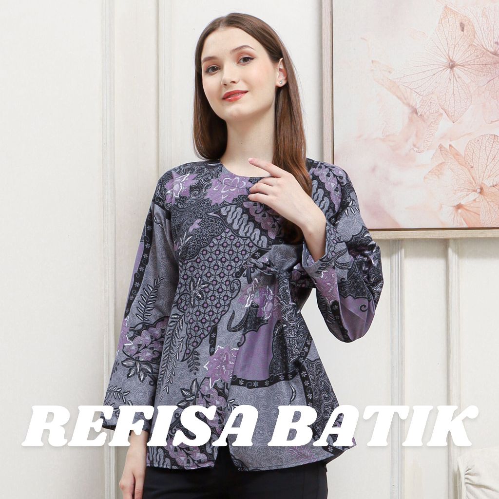 Tunik Batik Wanita Modern Atasan Batik Wanita Baju Batik Lengan Panjang Ready Seragam M L XL XXL
