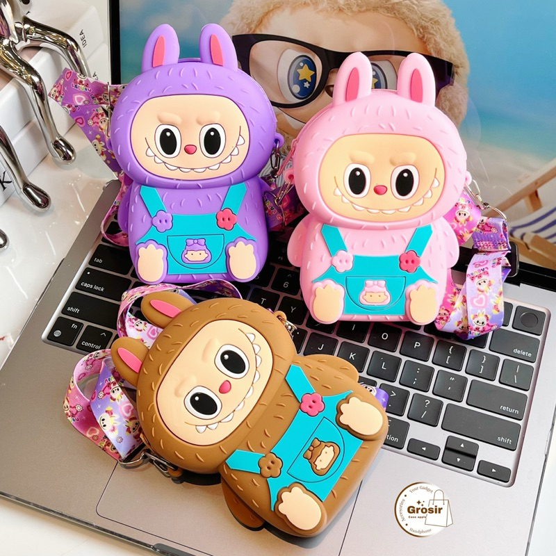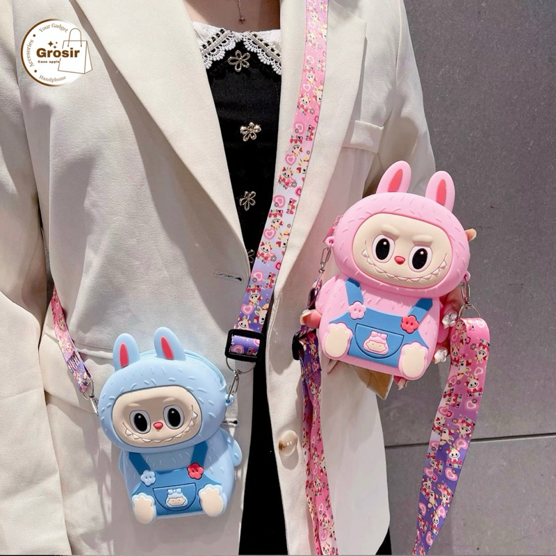 Tas Selempang Boneka Labubu / Sling Bag Anak Jelly Rubber Karakter Lucu Labubu Anak Laki Laki Dan Perempuan