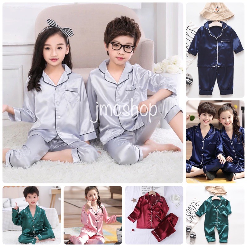 Setelan Bajutidur Piyama Satin Anak Lengan Panjang Celana Panjang Pp