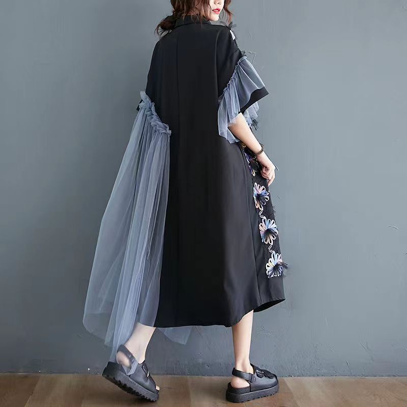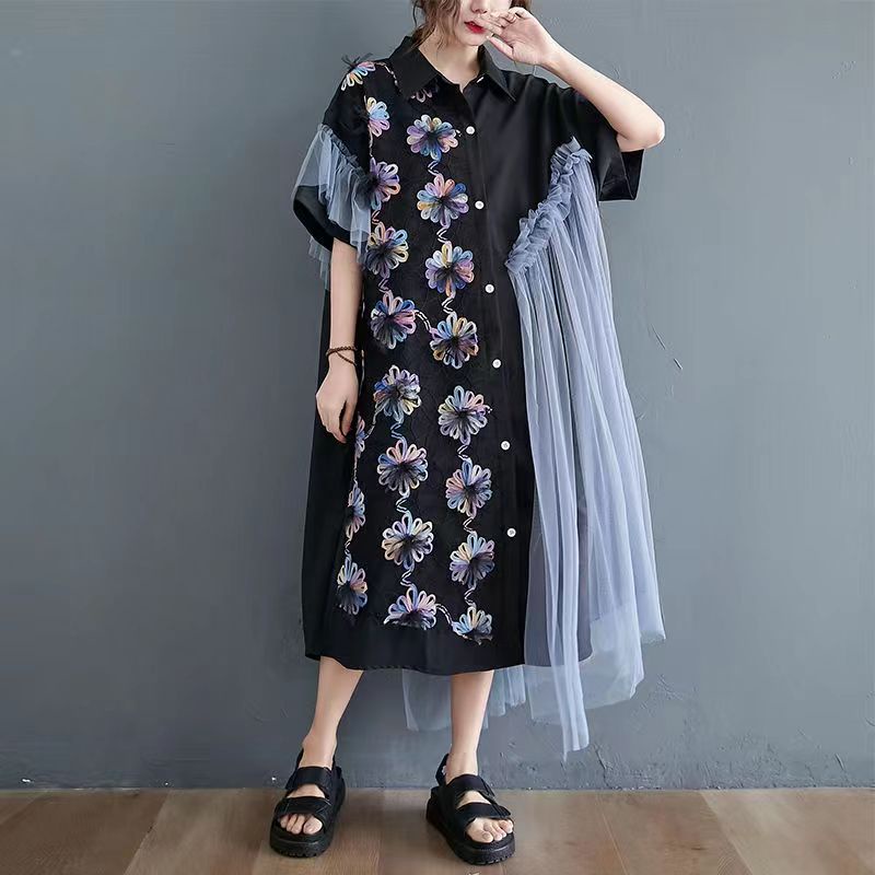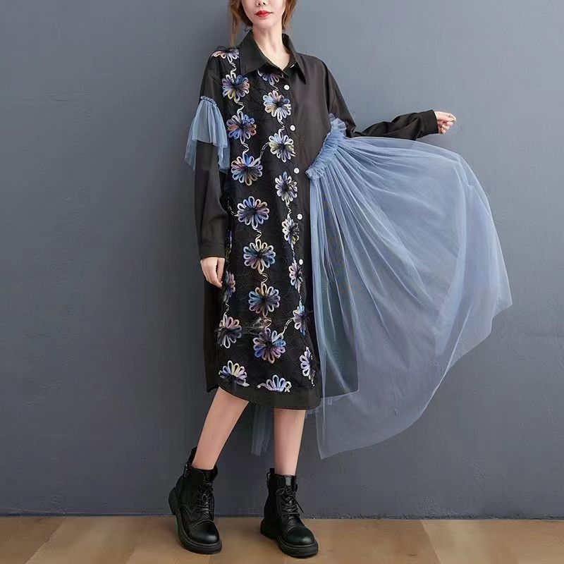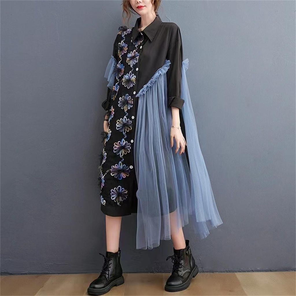 Busana gaya Eropa dan Amerika baru gaun kemeja dengan jahitan organza