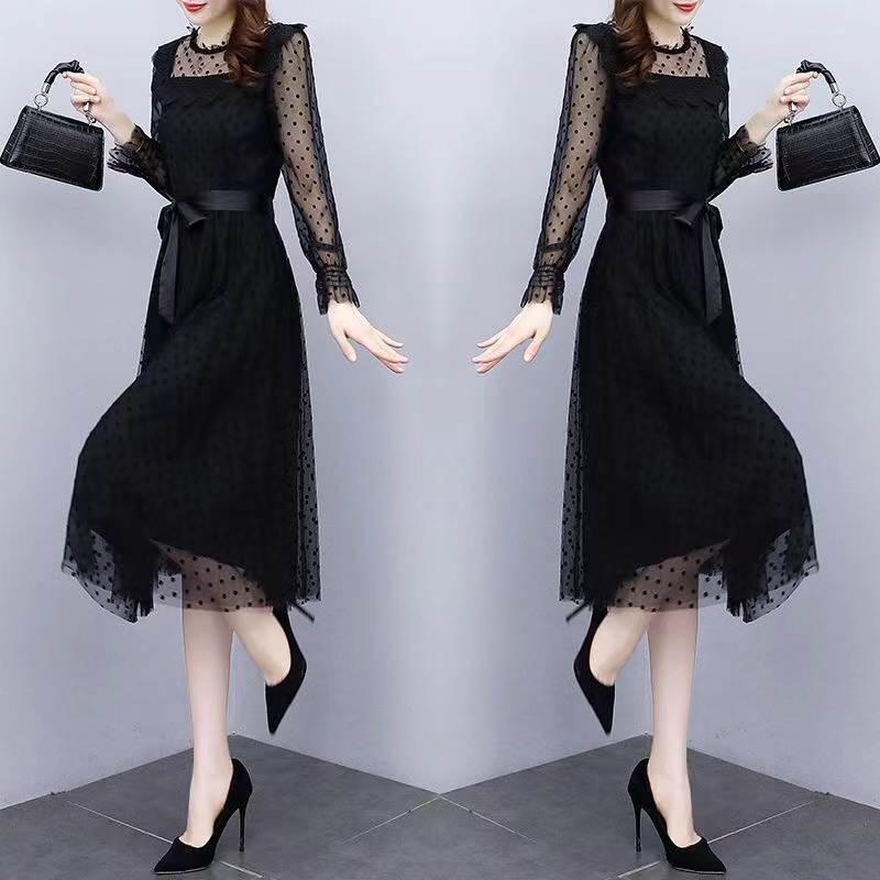 2023 Gaun hitam renda Korea baru/rok hitam kecil/Dress Korea