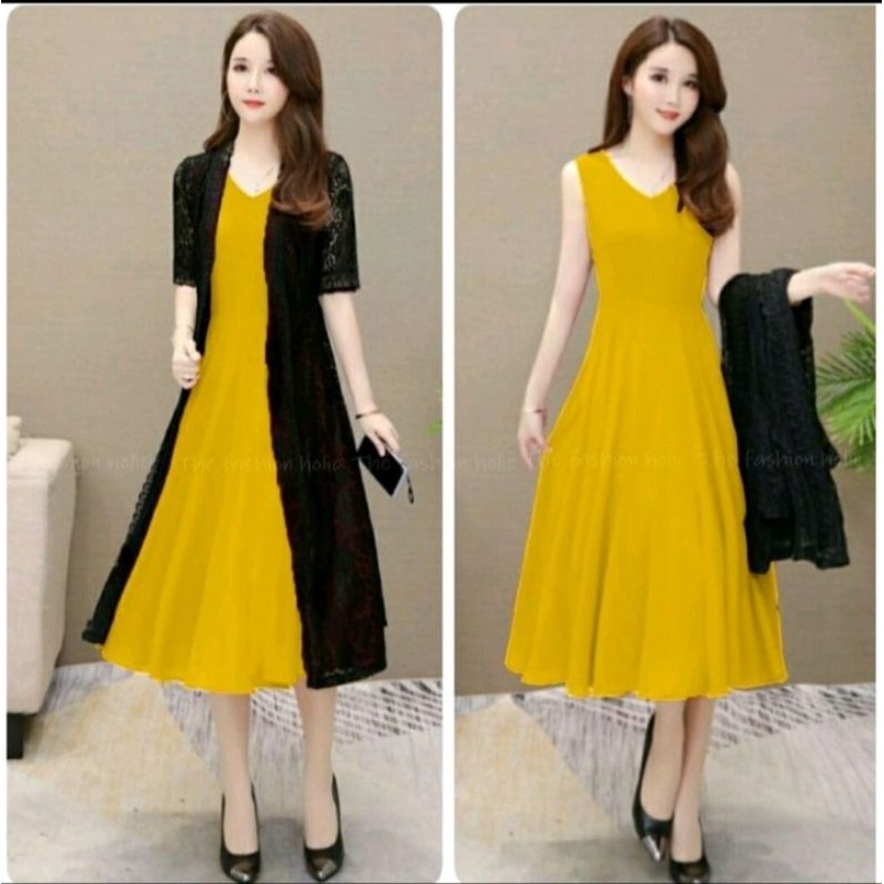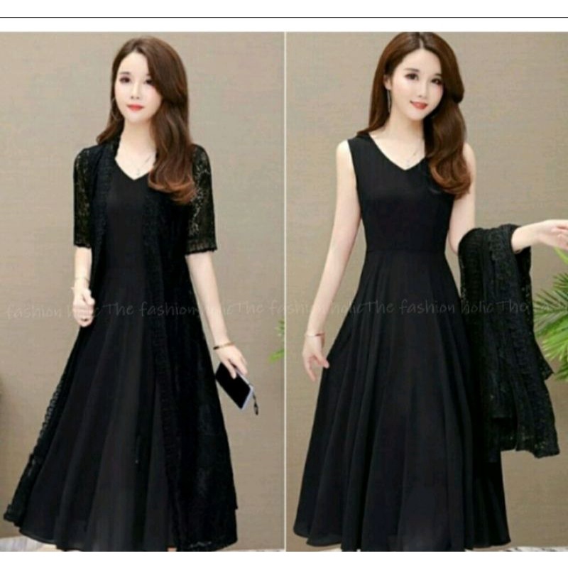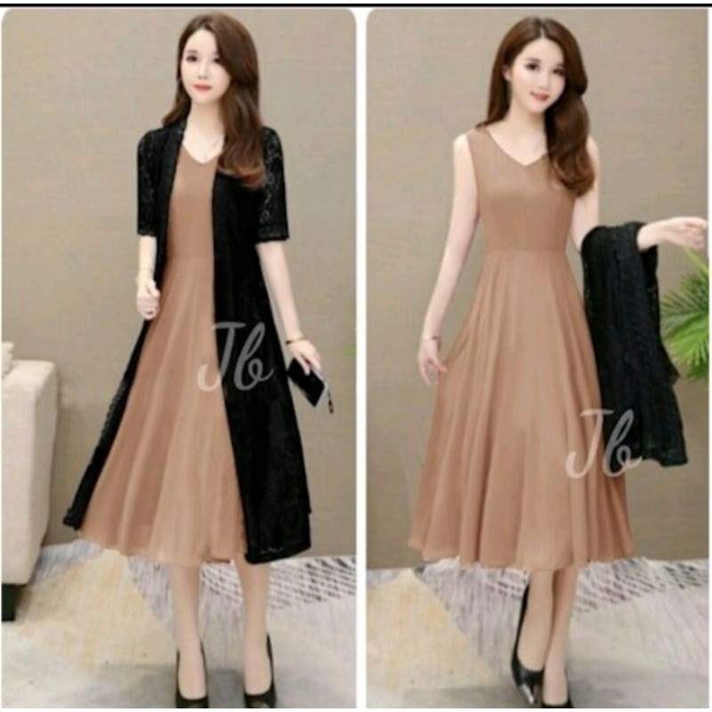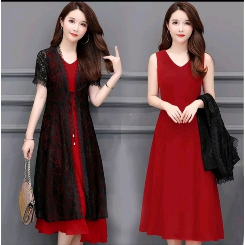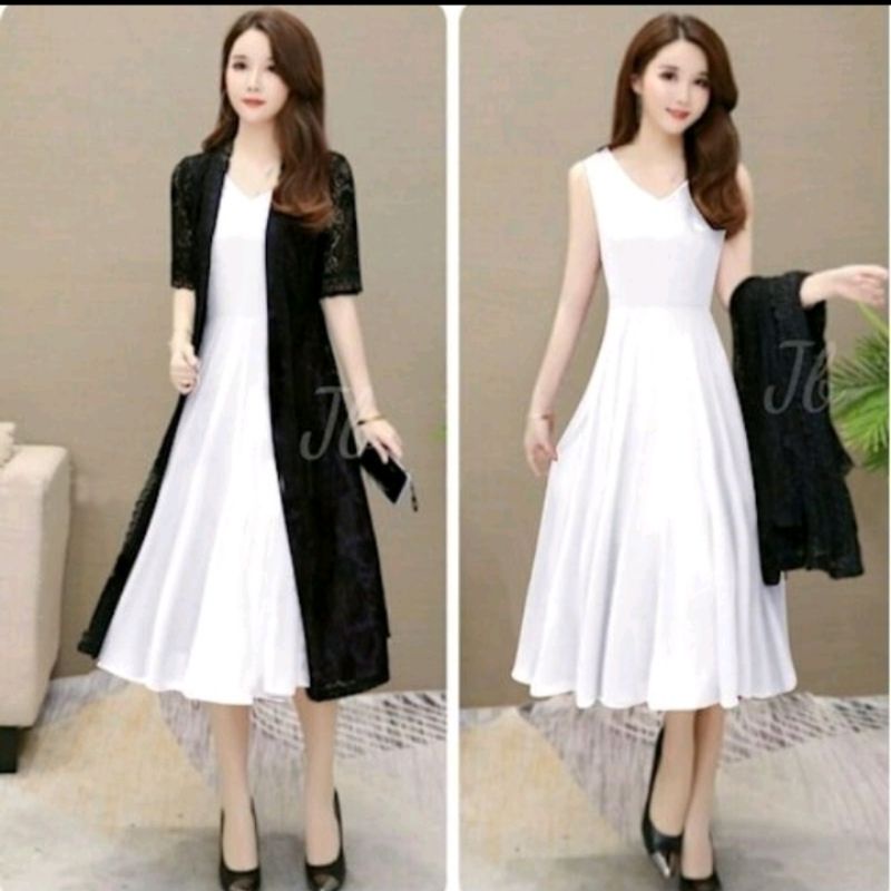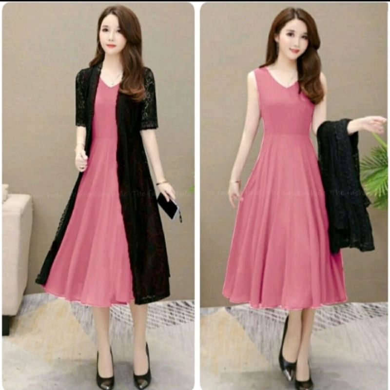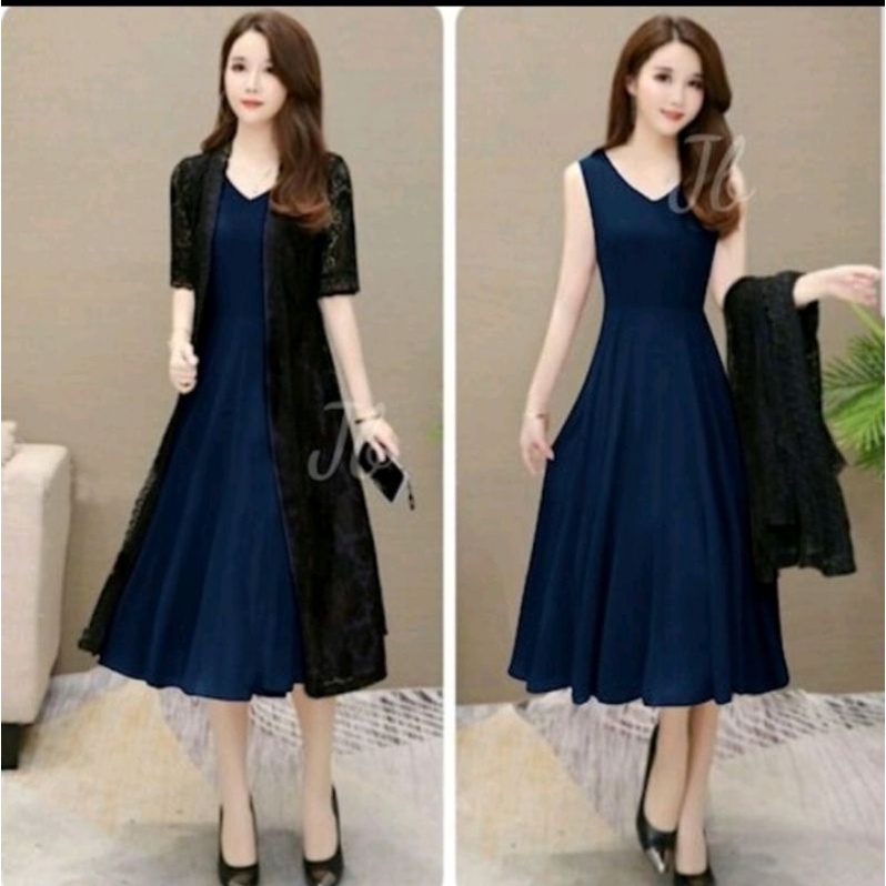 gaun wanita[satu paket+longkardi dres setile/korean.