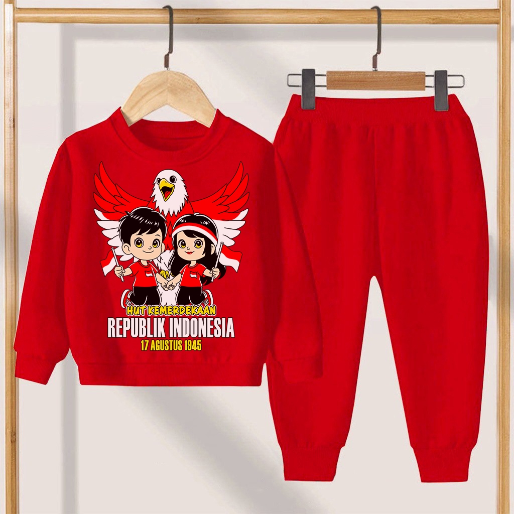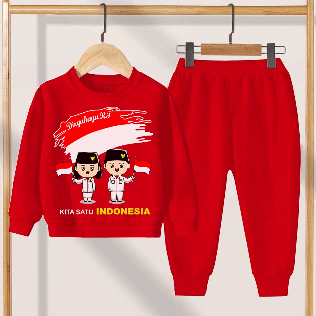 Setelan Baju Anak 17 Agustus 1945 Merdeka / Kemerdekaan Hut Ri / Merah Putih / Usia 3-12 Tahun / Unisex