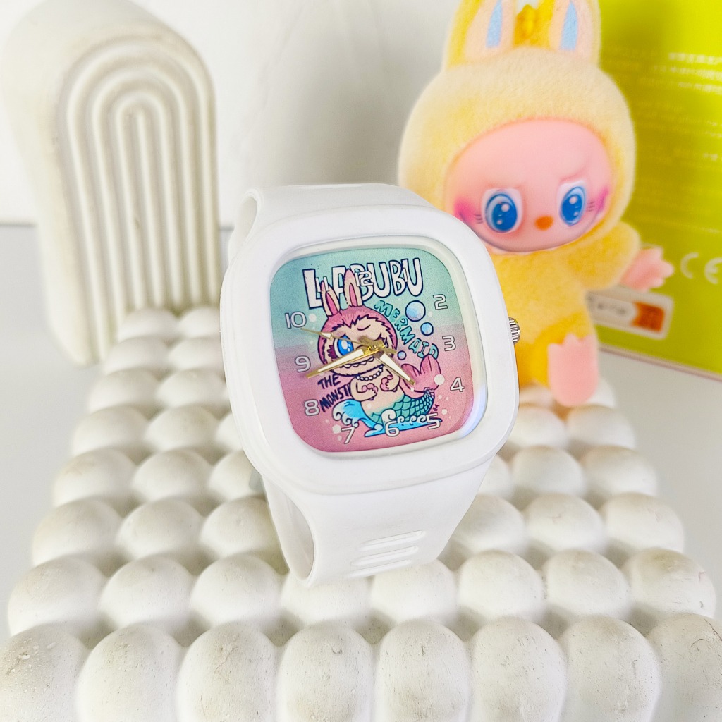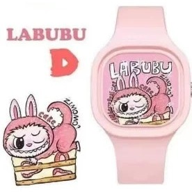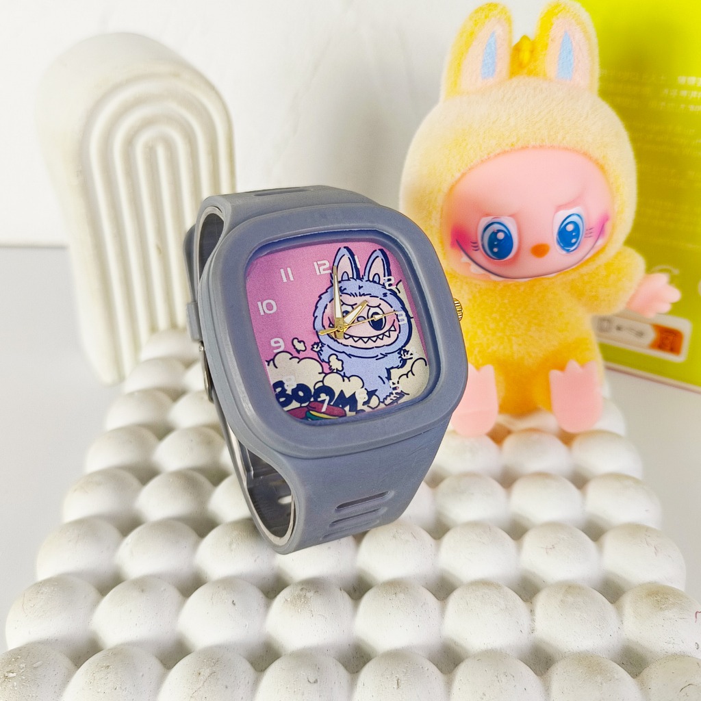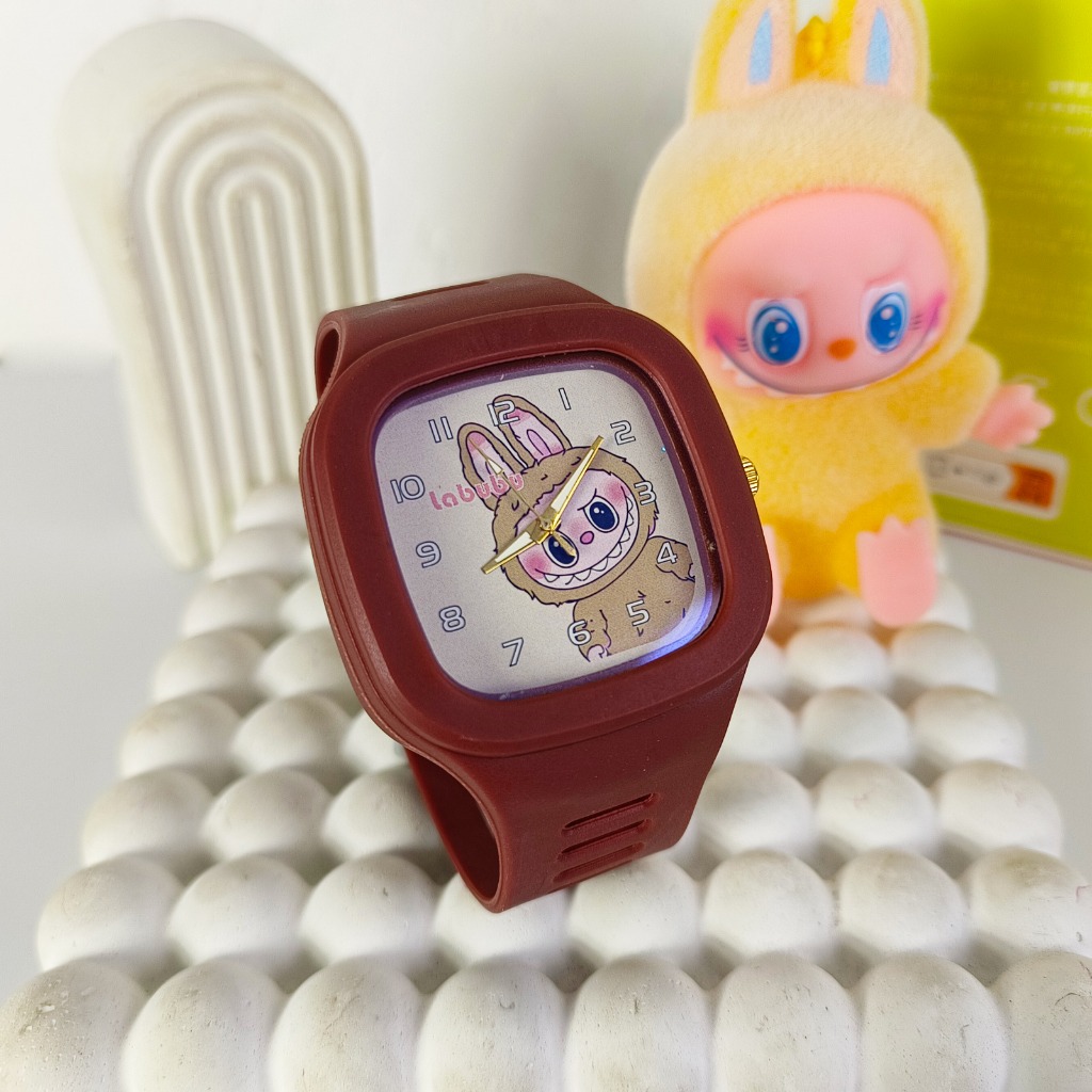 A02 Labubu Jam Tangan Anak Tali Rubber Persegi Quartz Laki-Laki Fashion Murah Hadiah