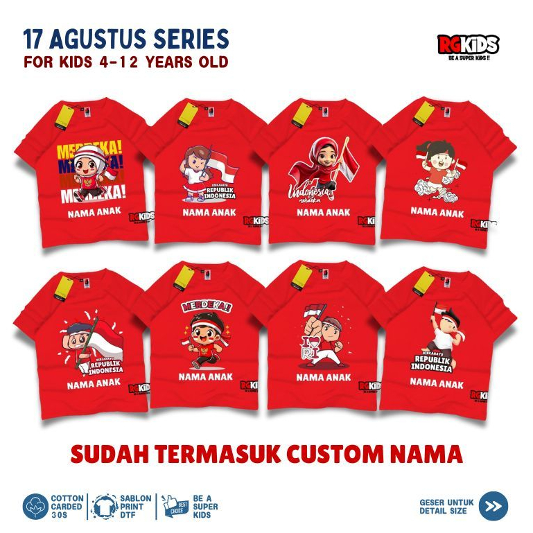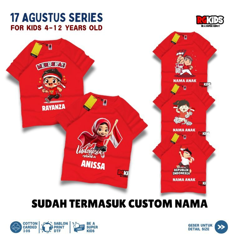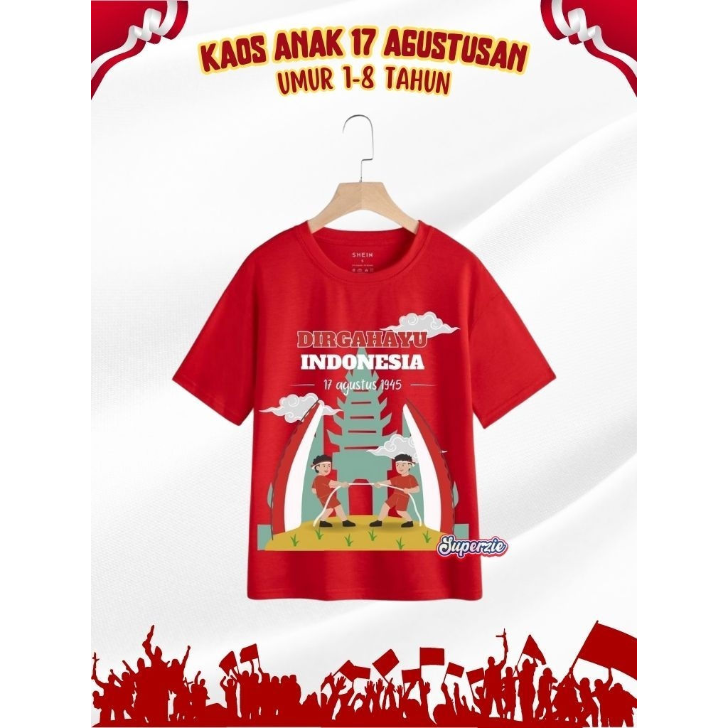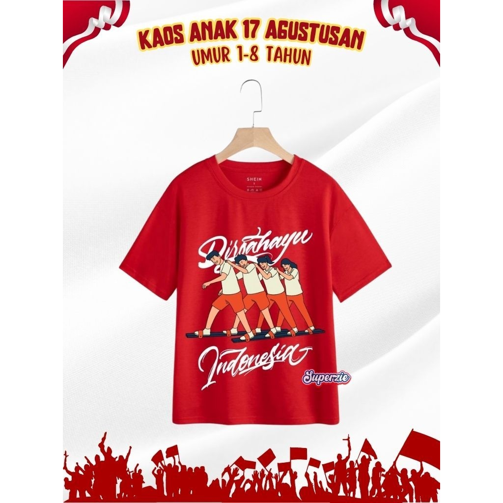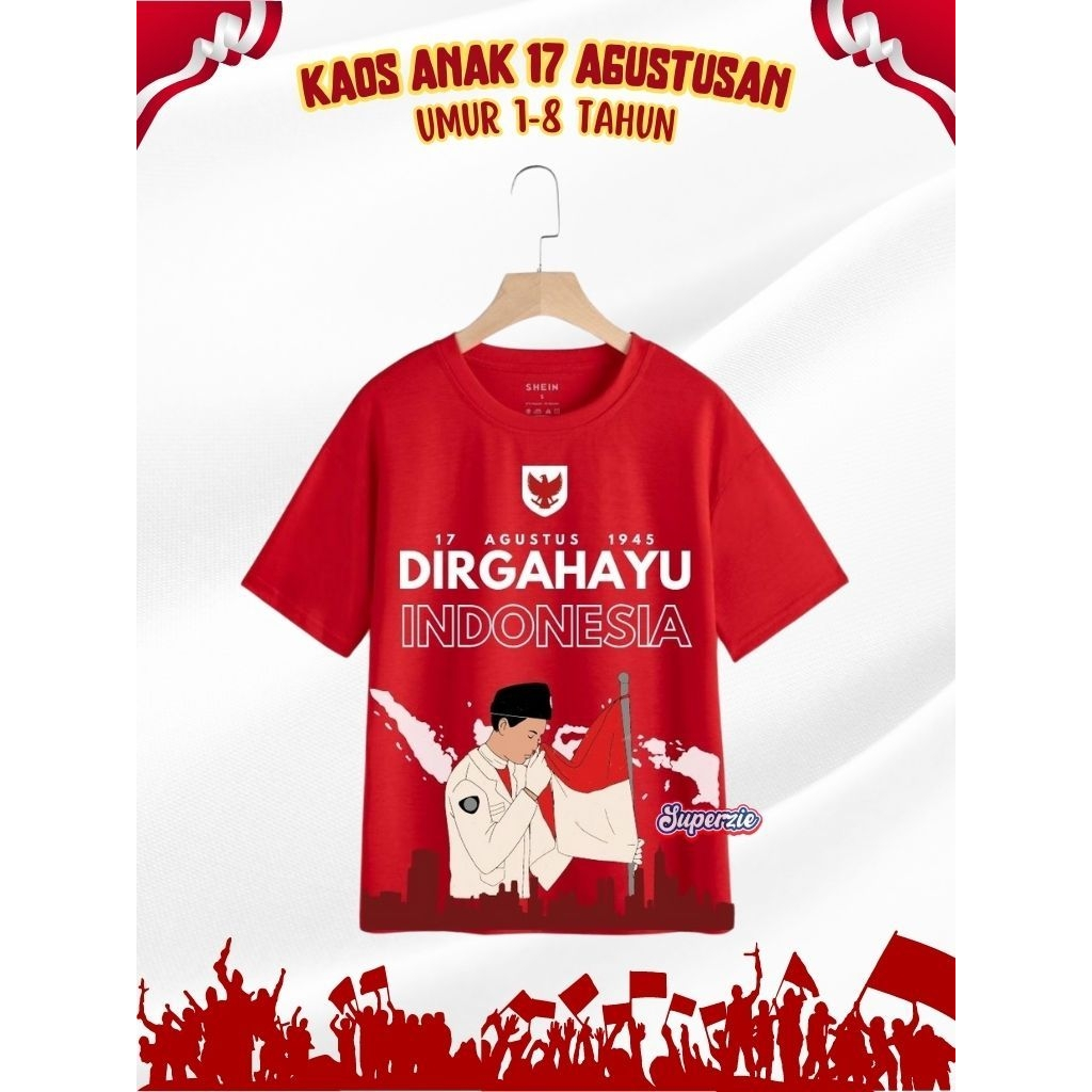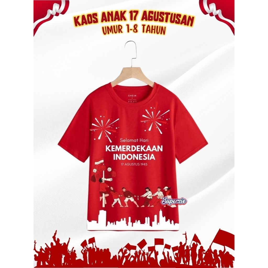 Kaos Anak Kemerdekaan 17 Agustus Indonesia 4-12 Tahun Sablon Print Dtf Custom [ Gratis Nama ]