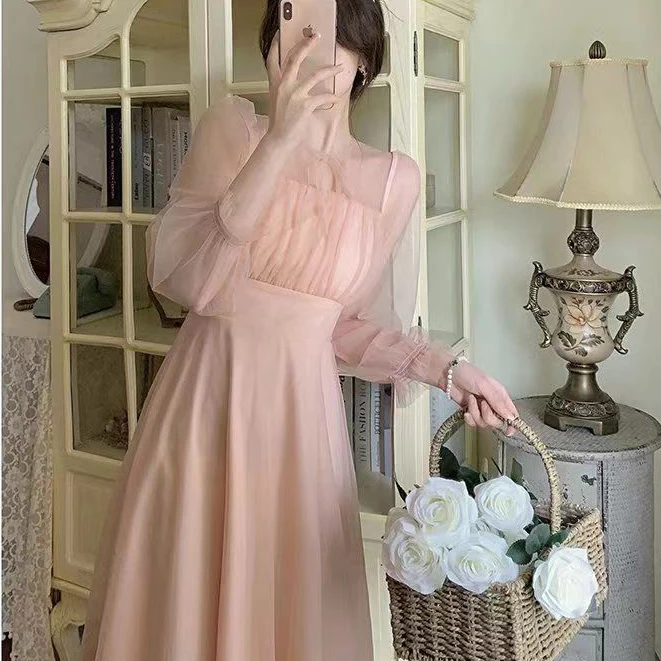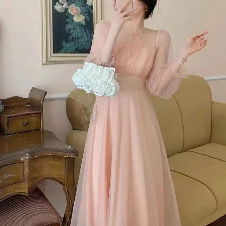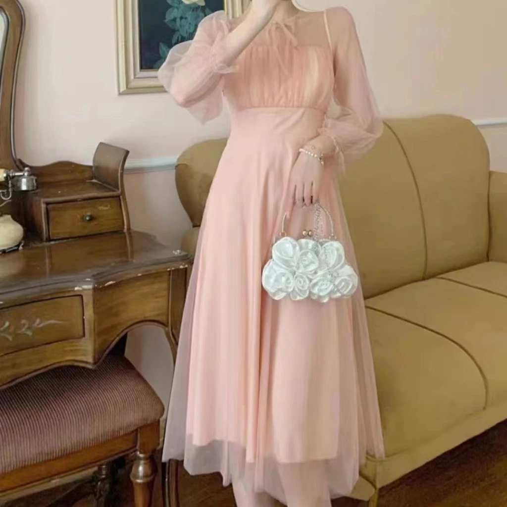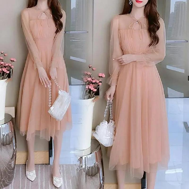 Dress Pesta Perancis Vintage Gaun Premium/Dress Vintage Pink/Dress Pesta Korea
