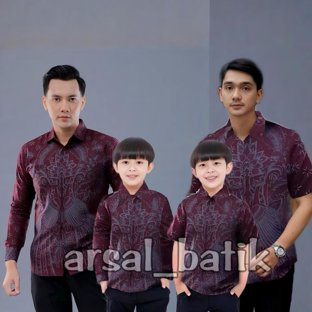 Terbaru Couple Kemeja Batik Ayah dan Anak Warna Maroon Burgundy