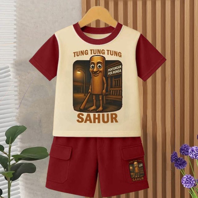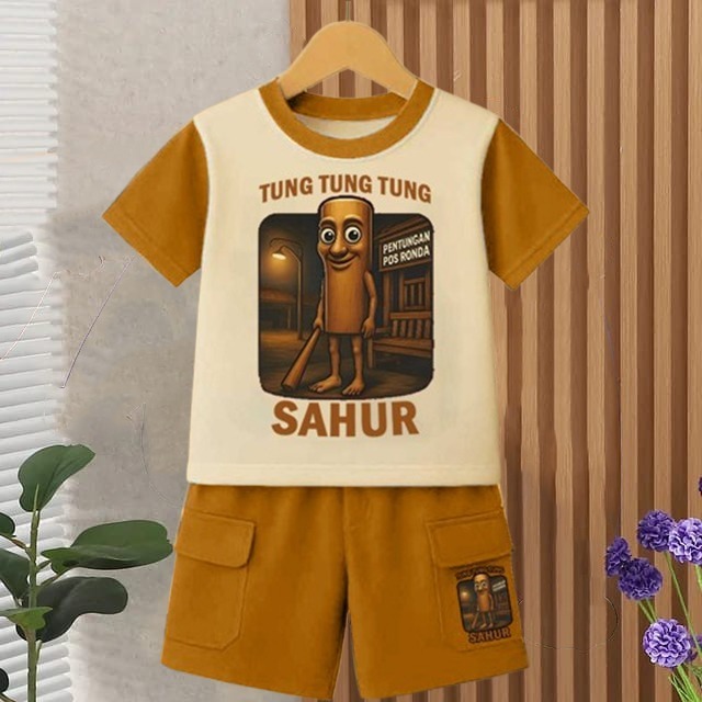 Setelan Anak Tung Tung Sahur Pentlyuan Pos Ronda Baju Anak Laki Laki Kaos Lengan Pendek
