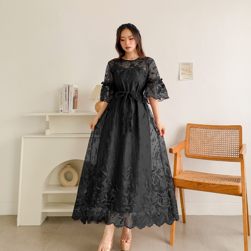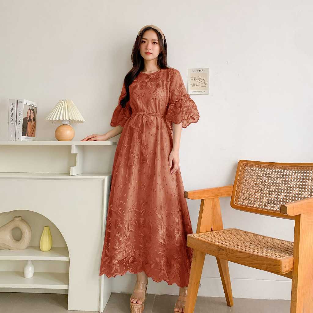 PCS Longdress Daniela Fashion Pakaian Wanita Gaun Bahan Brukat 3 Ukuran M L XL REALPIC