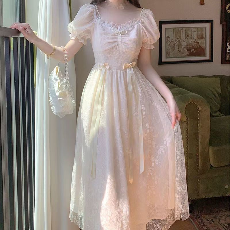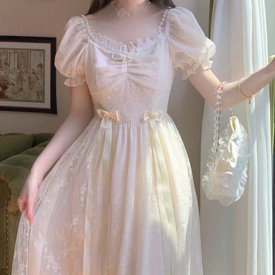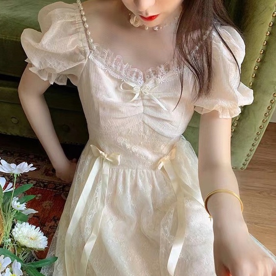 【Ready Stock 】Dress Korea Kondangan Terbaru/Dress Putih Brukat Korea Elegan