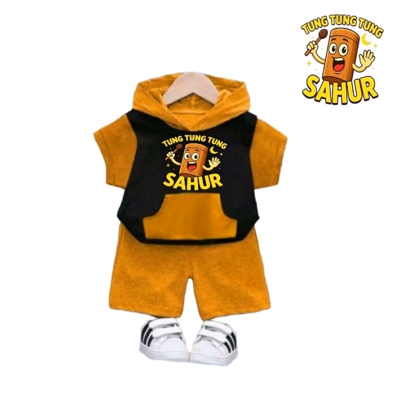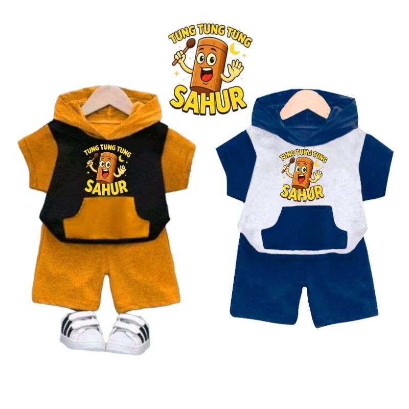 Tung Tung Sahur Setelan Hoodie Anak 1-5 Tahun Set Hoodie Anomali Terbaru