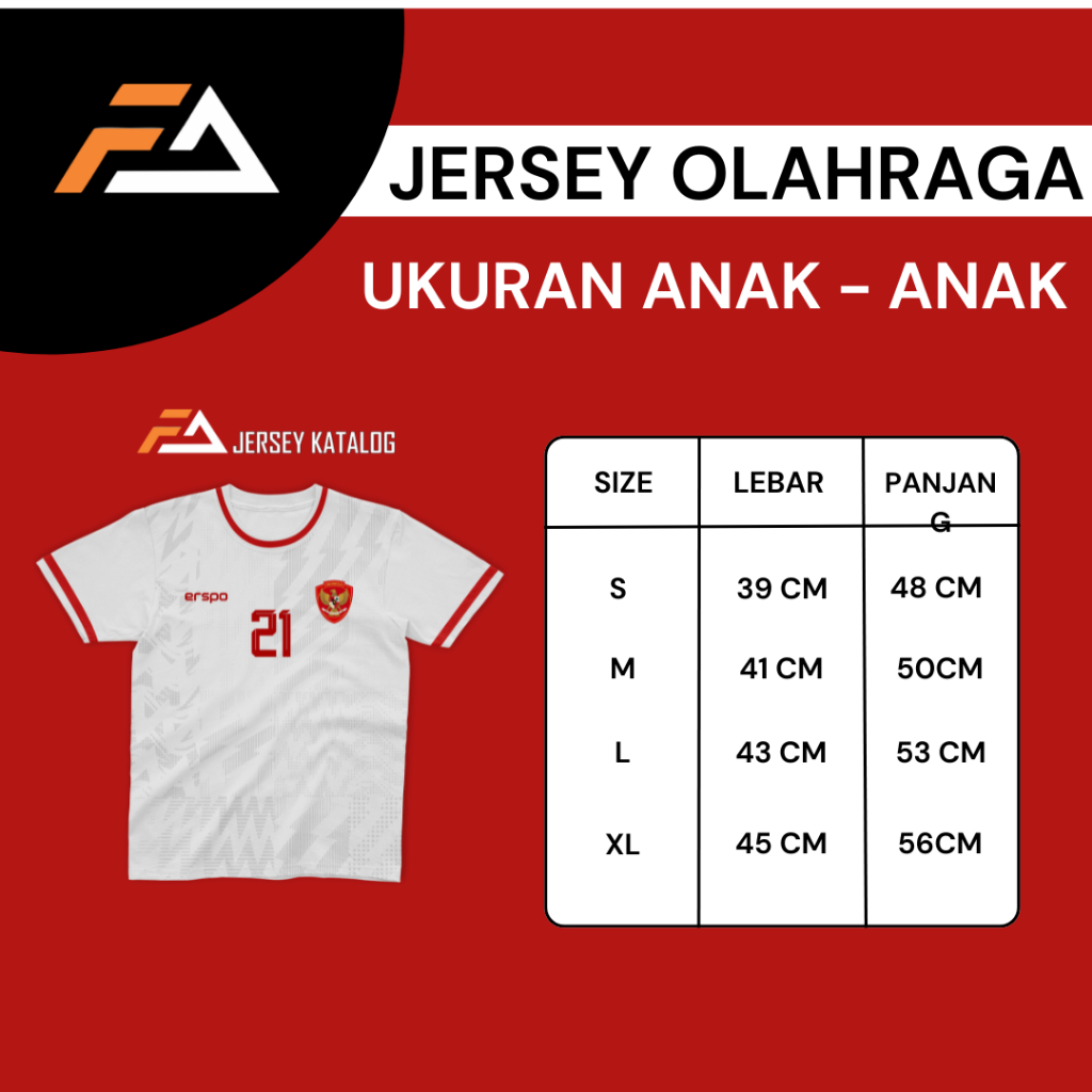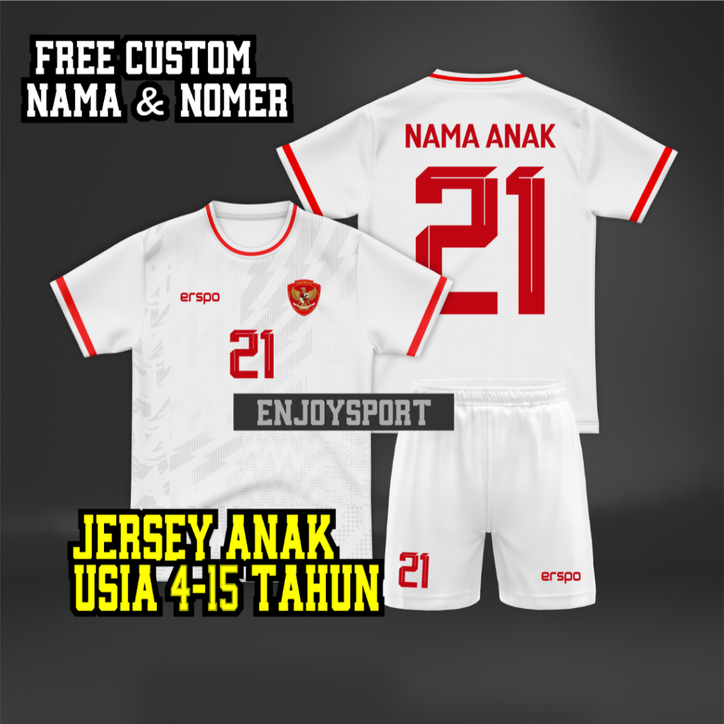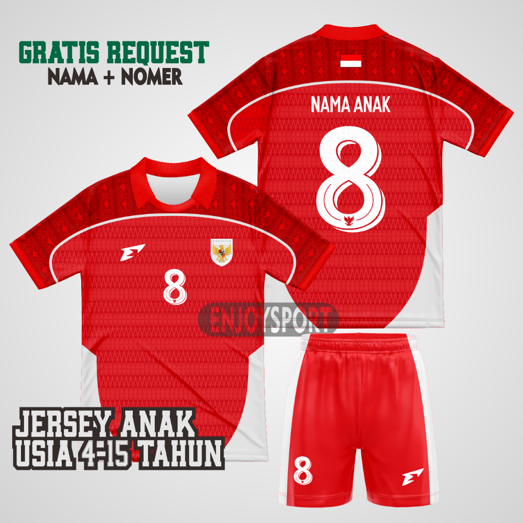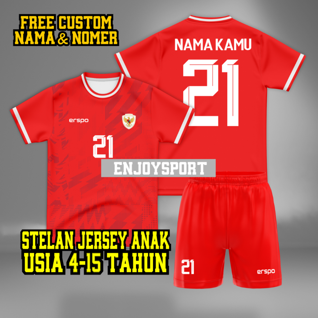Gratis Sablon Nama Dan Nomer Punggung, Stelan Jersey Timnas Indonesia Terbaru Ukuran Anak.