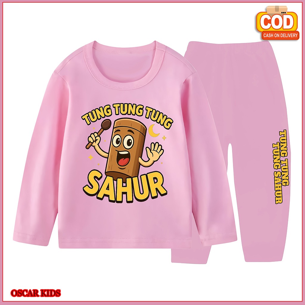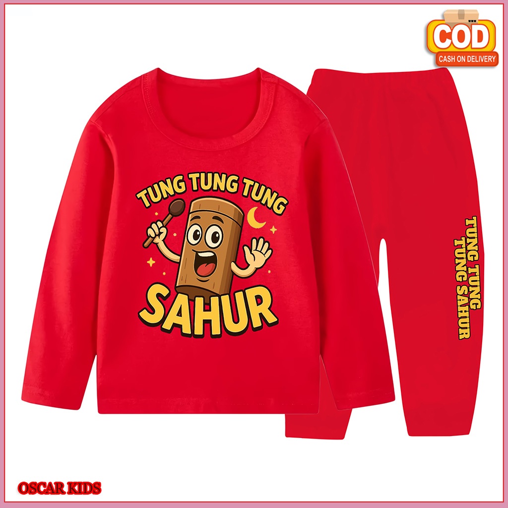 Tung Tung Tung Sahur Piyama Setelan Anak Laki Laki Lengan Panjang Celana Panjang 3-10 Tahun