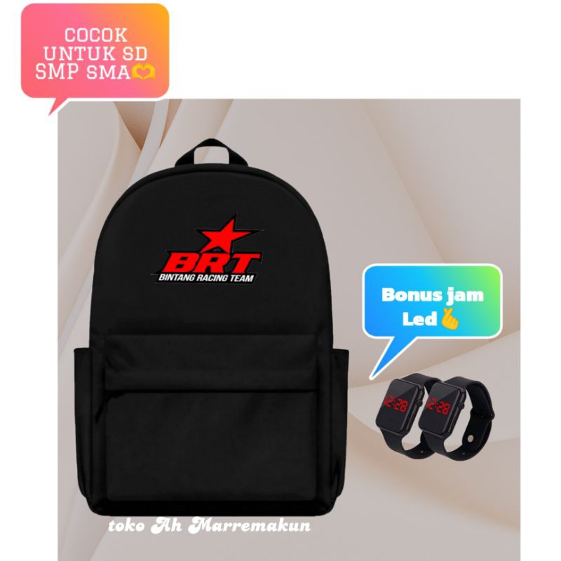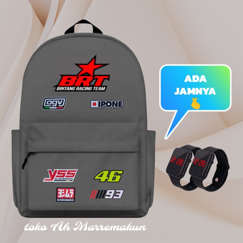 Tas Ransel Sekolah Anak Laki Laki Pria Wanita Remaja Sd Smp Sma Smk - Tas Motif Racing Kekinian Bonus Jam