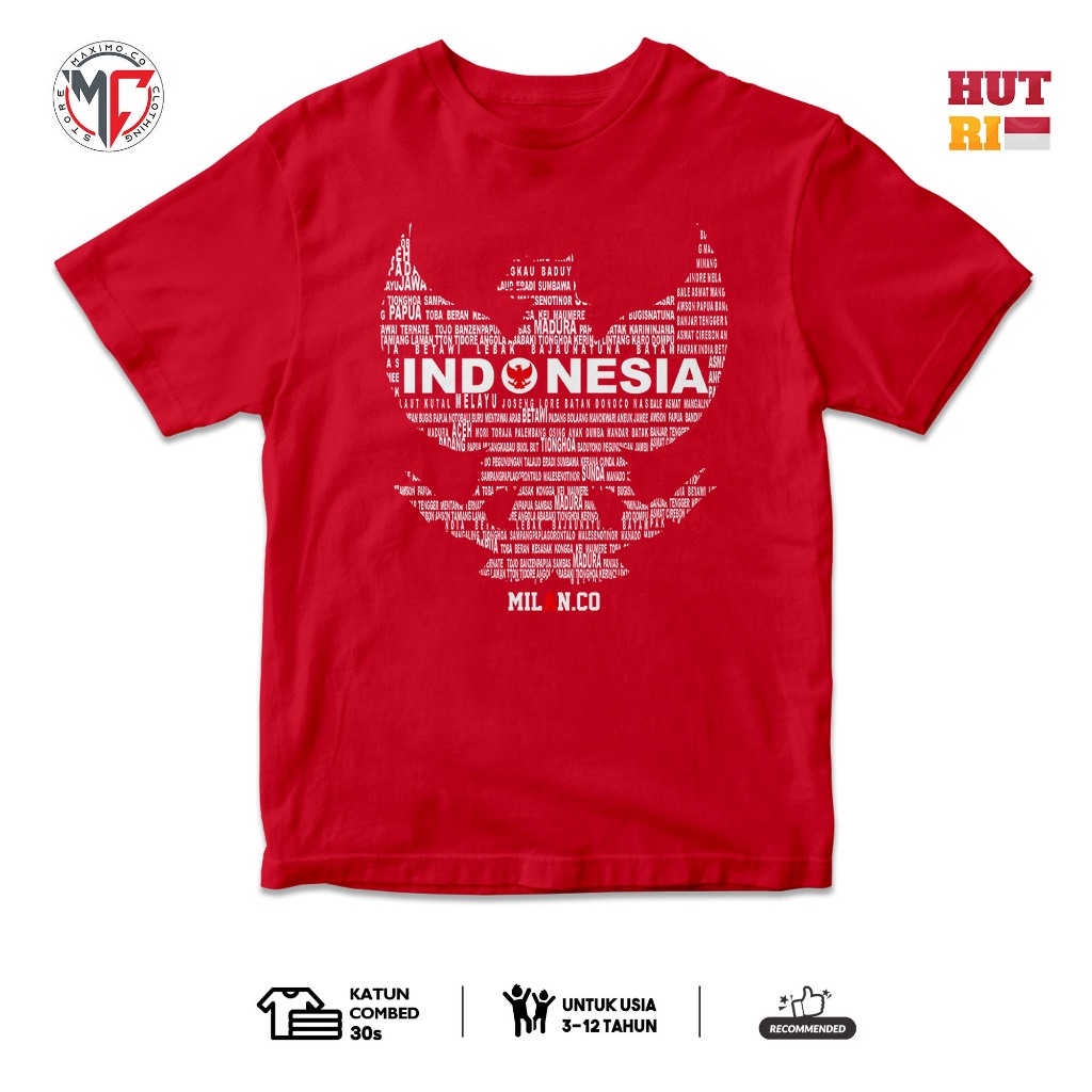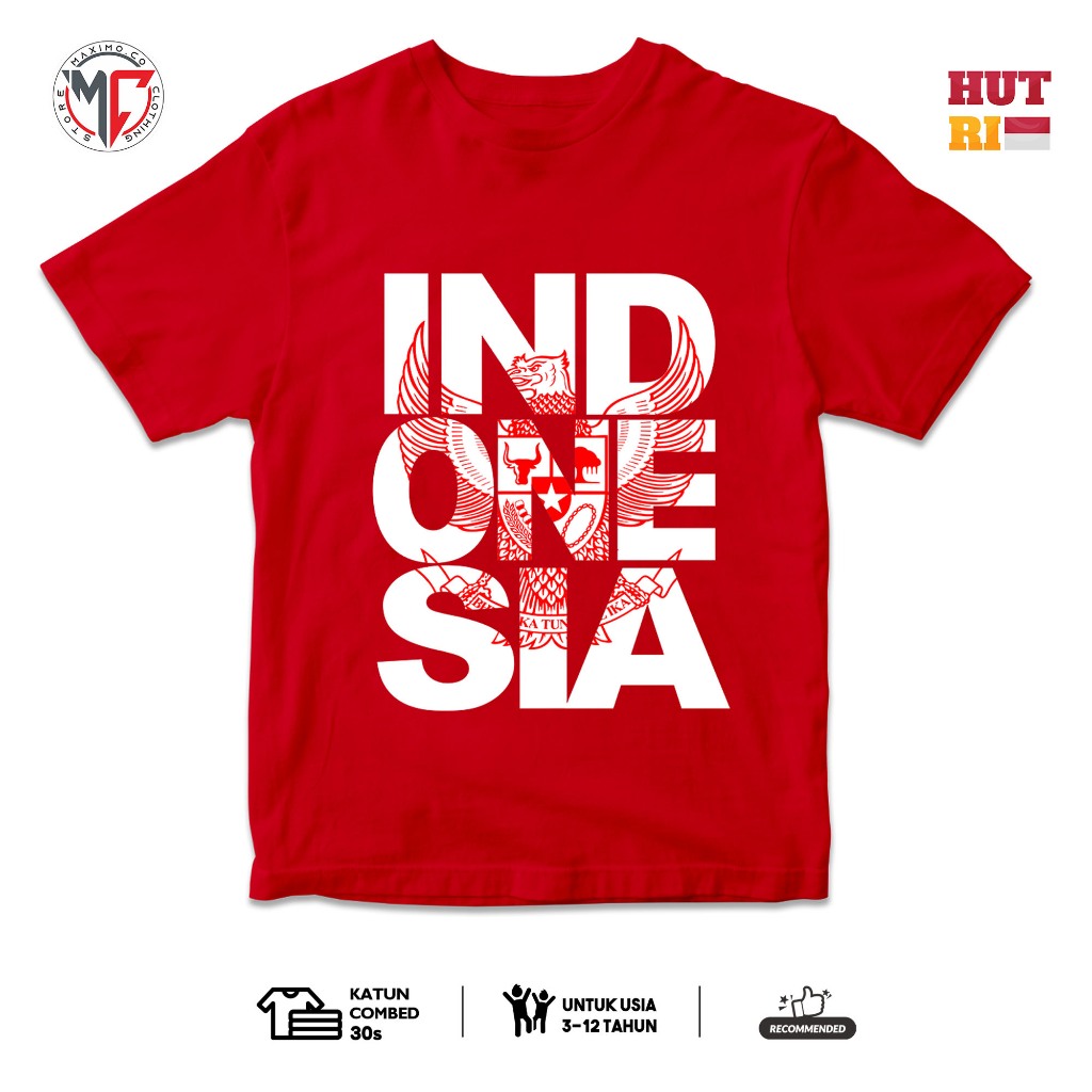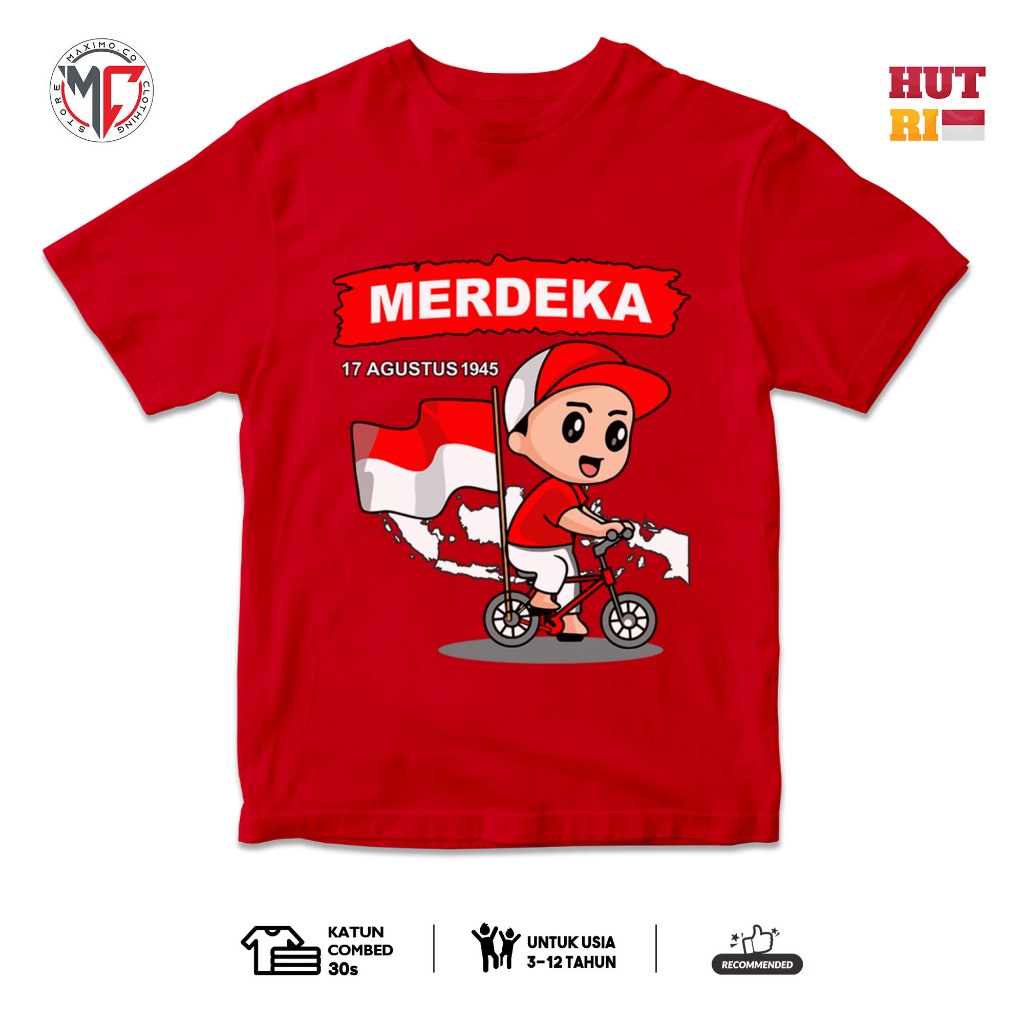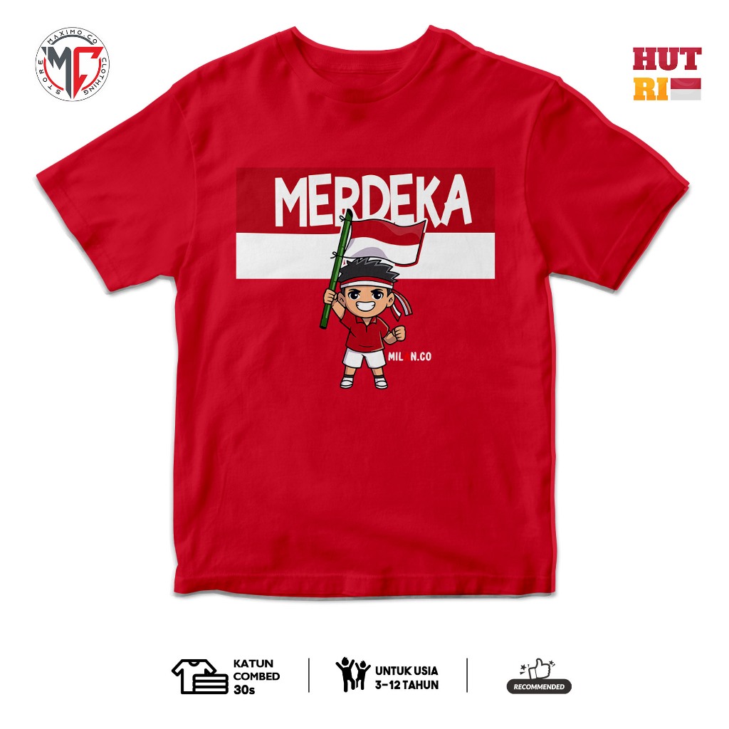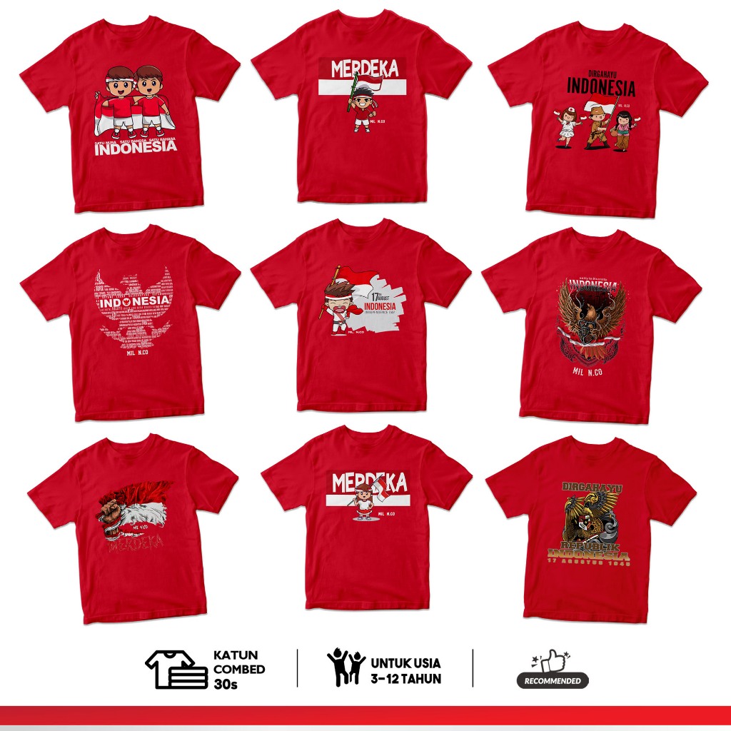 Kaos Anak Kemerdekaan 17 Agustus Lengan Pendek Merah Usia 4-12 Tahun Bahan Katun Premium