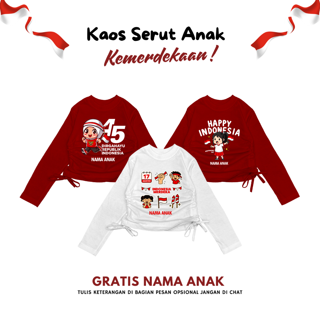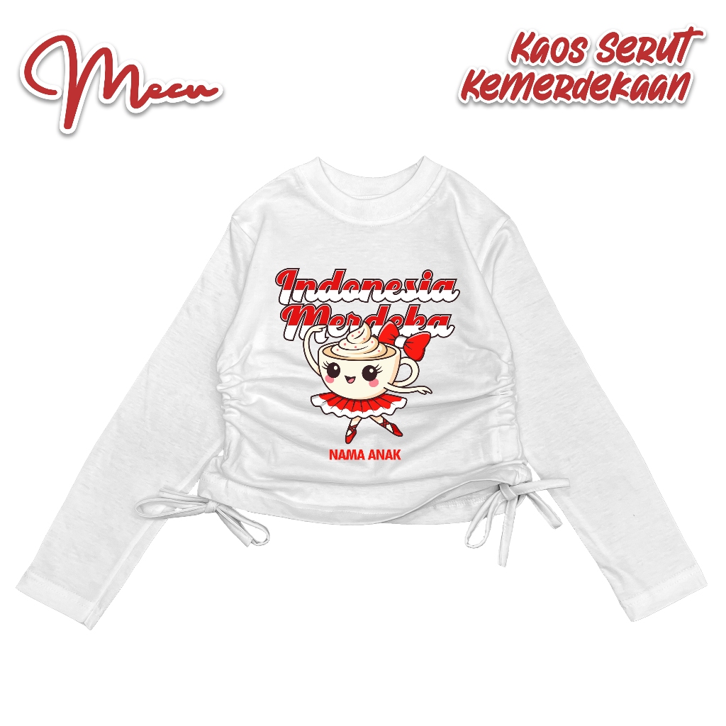 Baju Kaos Crop Serut Anak Mecukids Usia 4 5 6 7 8 9 10 11 12 Tahun Lengan Panjang Custom Nama Spesial Kemerdekaan 17 Agu